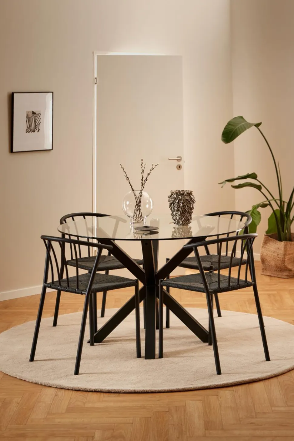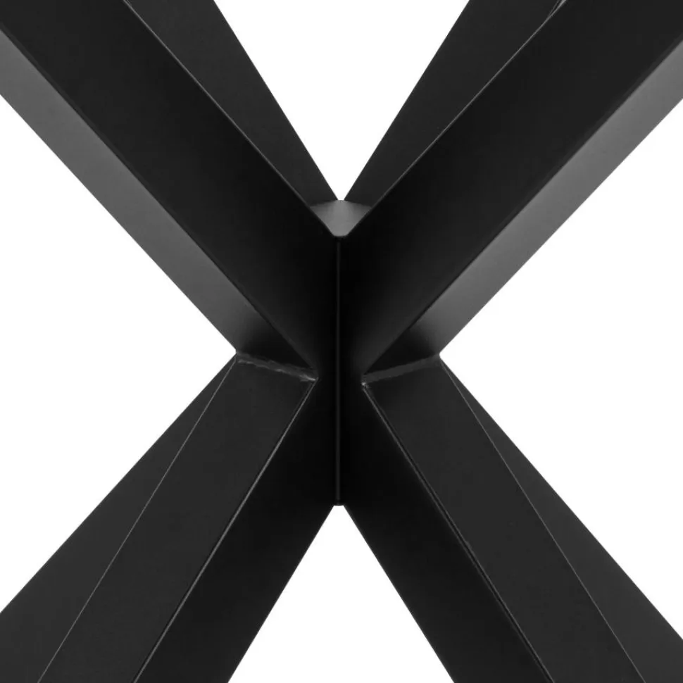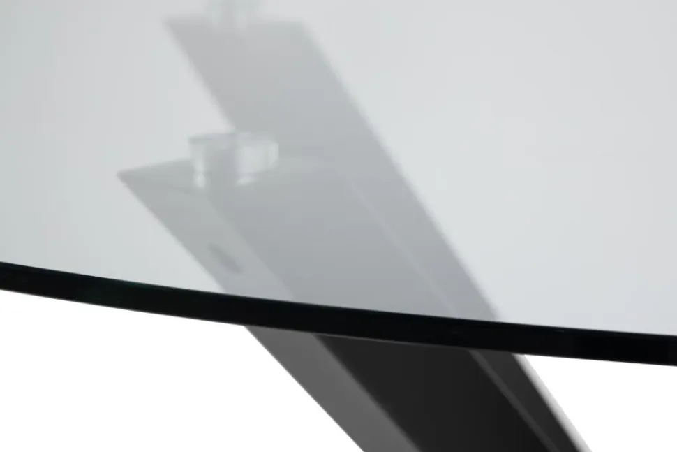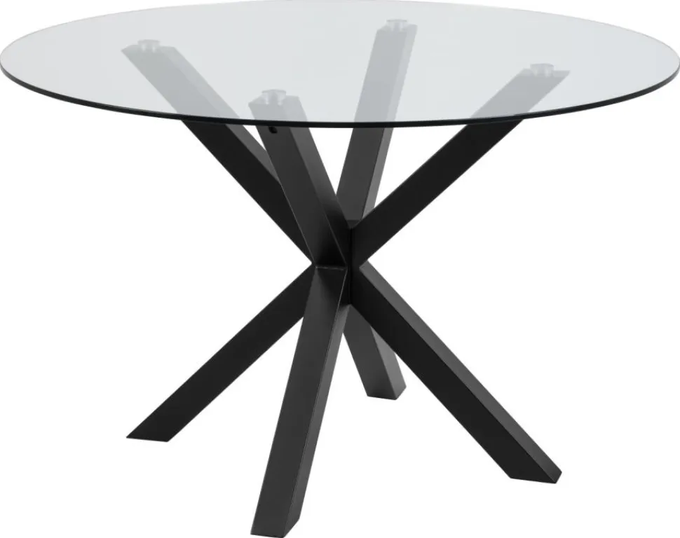 Okrągły stół do jadalni Heaven, blat z przezroczystego szkła hartowanego, podstawa krzyżowa z matowej, szorstkiej stali malowanej proszkowo na kolor czarny. Ten okrągły stół jadalniany zapewnia miejsce do delektowania się swobodnymi posiłkami i pogawędkami przy kawie, nawet w niewielkich jadalniach i kącikach kuchennych. Blat z przezroczystego szkła hartowanego osadzony jest na rzeźbiarskiej podstawie z czarnej, szorstkiej stali malowanej proszkowo, nadającej mu architektoniczny wygląd. Waga 39kg, Max obciążenie 100kg. Wymaga montażu.Wymiary kartonów: 127,5×127,5x5cm i 76x73x7cm