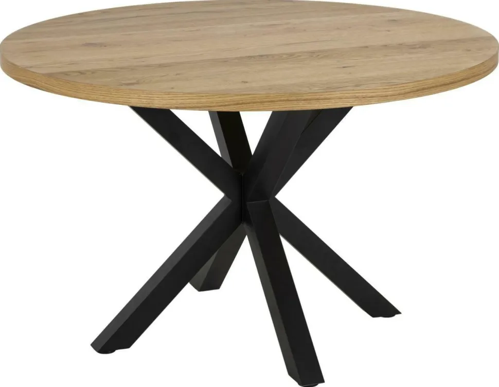 Duży stół do salonu lub jadalni jest miejscem, które posiada wręcz symboliczne znaczenie. To przy nim odbywają się rodzinne spotkania, ważne rozmowy, długie chwile przy pracy. Wydaje się być obowiązkowym elementem każdego domu, a co za tym idzie, musi być optymalnie dostosowany do stylu życia domowników i ich upodobań. OKRĄGŁY STÓŁ HEAVEN BLACK DĄB będzie zarówno pięknym wyposażeniem salonu, jak i miejscem rodzinnych spotkań. Jego unikalny charakter zaprezentuje się fenomenalnie w nowoczesnej kuchni lub jadalni, a także aranżacjach industrialnych i loftowych. Będzie także wyjątkowym dodatkiem do klasycznych wnętrz, którym doda charakteru. Ten wyjątkowy industrialny stół posiada okrągły blat z płyty meblowej imitującej drewno dębu, który pomieści bez problemu nawet 6 osób. Podstawę stanowi geometryczny metalowy stelaż w kolorze czerni, który dodaje charakteru, a przy tym pozwala na komfortowe dosunięcie krzeseł i zapewnia wygodę podczas siedzenia. Połączenie materiałów wygląda niezwykle elegancko i z pewnością nigdy Ci się nie znudzi.