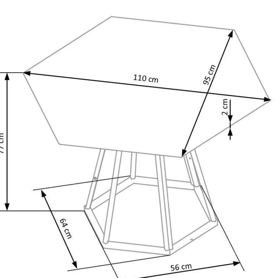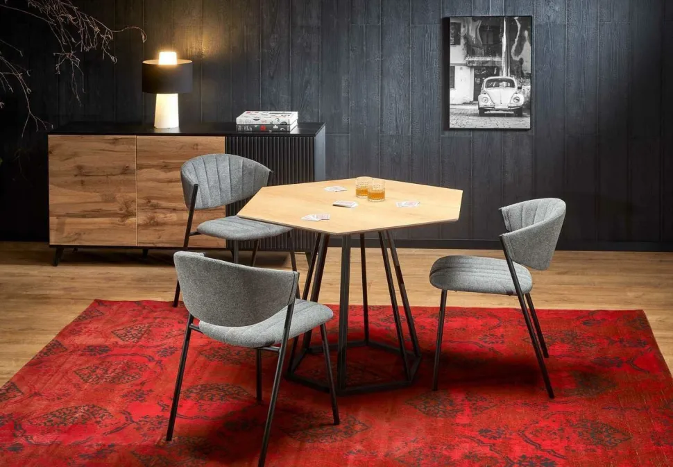 Stół Hexis reprezentuje połączenie stylów loftowego i nowoczesnego, tworząc harmonijną kompozycję, która pasuje do współczesnych wnętrz. Jego minimalistyczny, a zarazem oryginalny design sprawia, że staje się centralnym punktem w salonie lub jadalni. Stół Hexis został zaprojektowany jako 4-osobowy, co czyni go idealnym rozwiązaniem dla rodzinnych posiłków i spotkań towarzyskich. Jego sześcioboczny kształt nadaje stołu unikalności i umożliwia swobodne poruszanie się wokół niego, tworząc przyjemną atmosferę podczas wspólnych chwil. Stół Hexis waży 17 kg, co czyni go lekkim i łatwym w przemieszczaniu. Mebel ten to nie tylko praktyczne rozwiązanie do codziennego użytku, ale również designerski element, który nadaje pomieszczeniu wyjątkowego charakteru i estetyki.