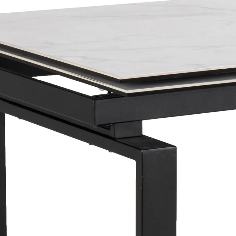 Imitacja białego marmuru nadaje mu elegancki i luksusowy wygląd, który z pewnością wyróżni Twoją jadalnię. Charakterystyczne metalowe nogi, malowane proszkowo, dodają mu nowoczesności i sprawiają, że stół będzie pasował do wielu różnych aranżacji wnętrz.