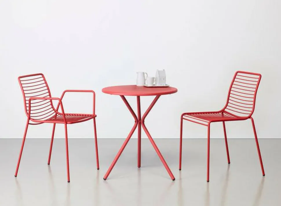 Stół Leowykonany został z malowanej stali galwanizowanej,co gwarantuje jego trwałość oraz odporność na warunki atmosferyczne.Blat o średnicy 60 cmi rurowe nogi wykonane z ocynkowanej i malowanej proszkowo stali zapewniają stabilność i solidność konstrukcji. Całość waży jedynie 12,6 kg, co czyni stółłatwym w przenoszeniui ustawianiu według własnych potrzeb. Leo charakteryzuje się nie tylko wysoką jakością wykonania, ale także funkcjonalnością i łatwością użytkowania. Jego demontowalna konstrukcja umożliwia wygodny montaż oraz zapewnia prawidłowy proces recyklingu. Dodatkowo, materiały użyte do produkcji sąłatwe w czyszczeniu, co sprawia, że stół pozostaje estetyczny przez wiele lat.