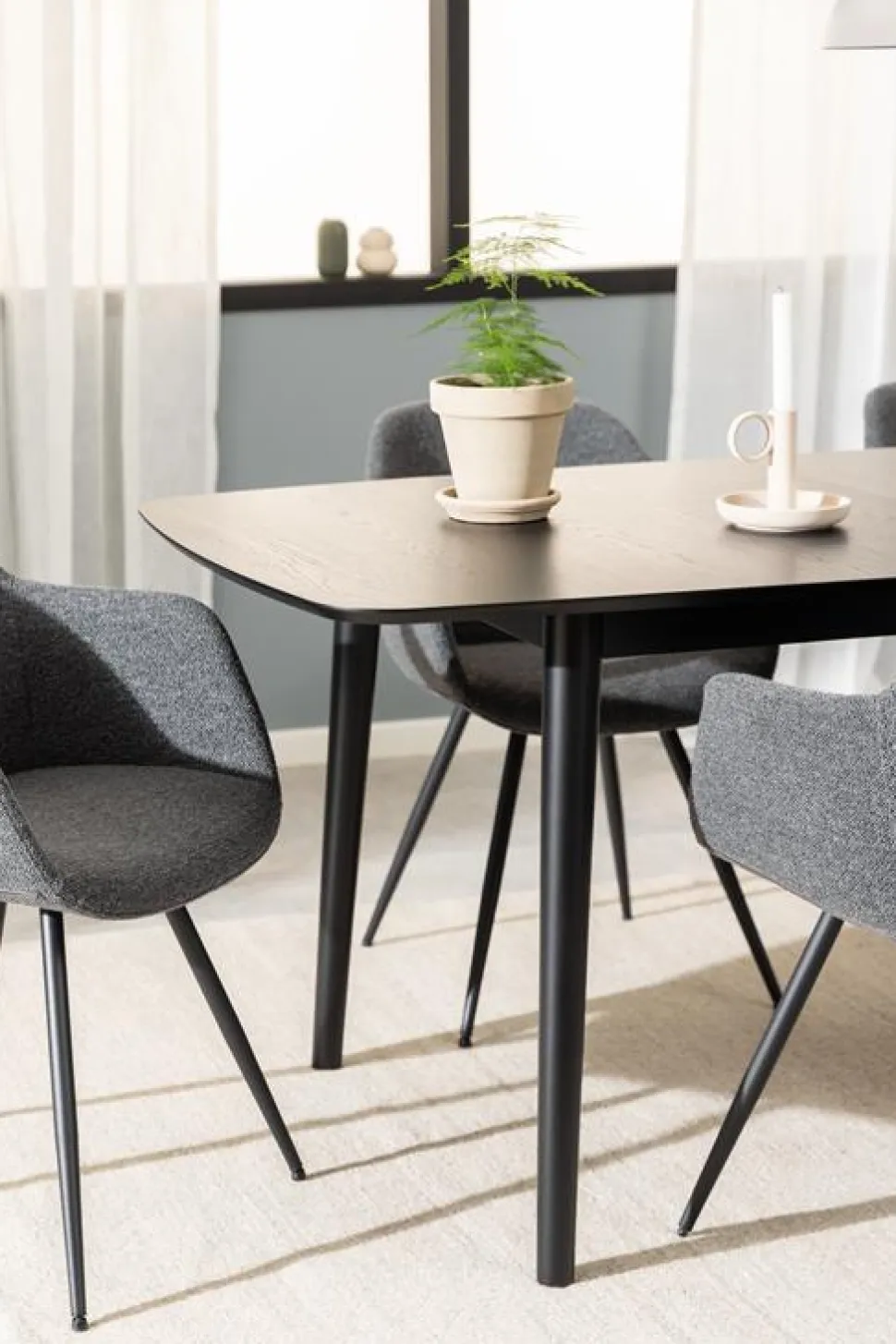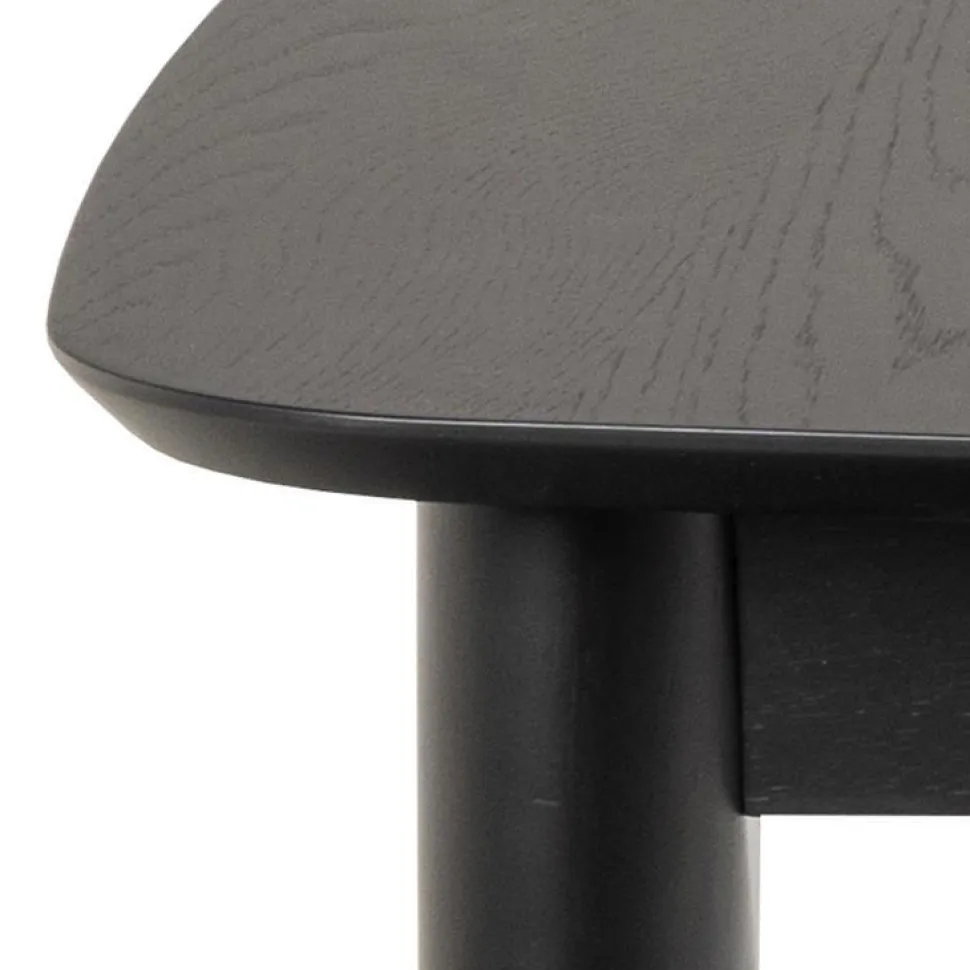 - Blat z forniru dębowego lakierowanego na czarno – elegancki i trwały materiał, nadający stołu wyjątkowy wygląd.