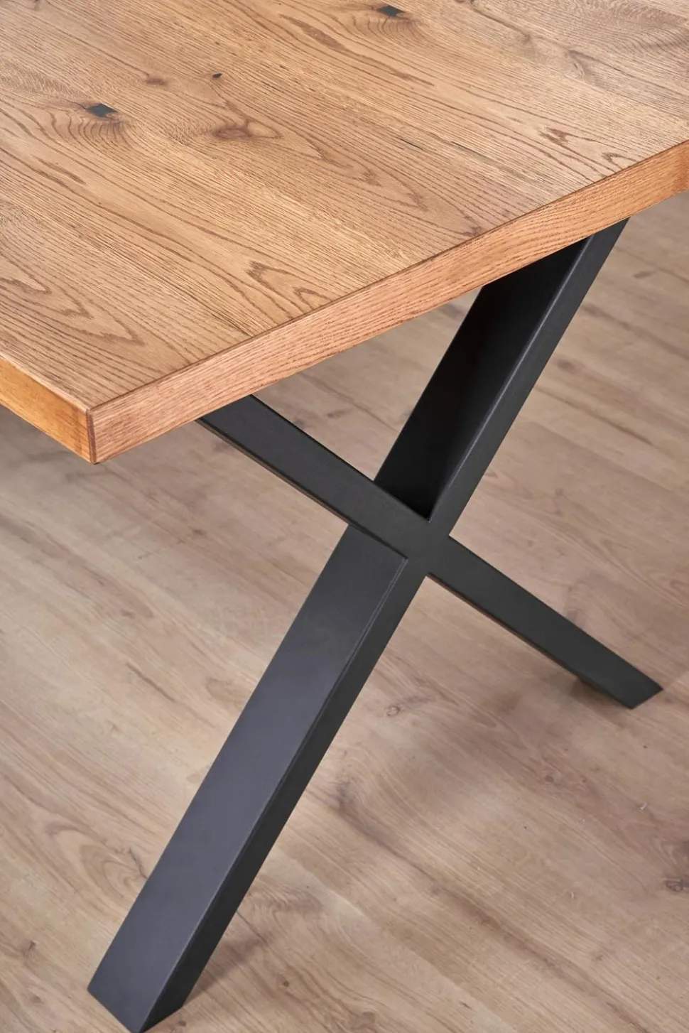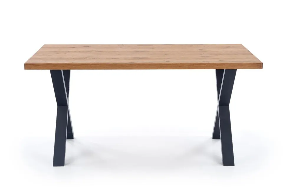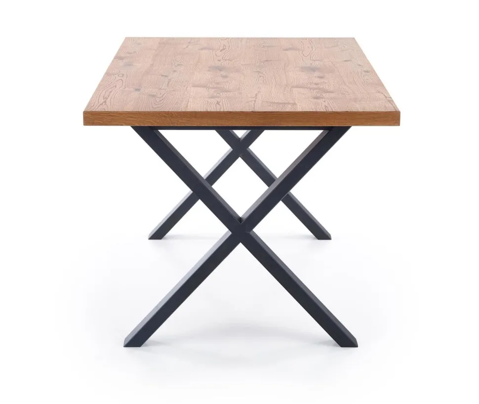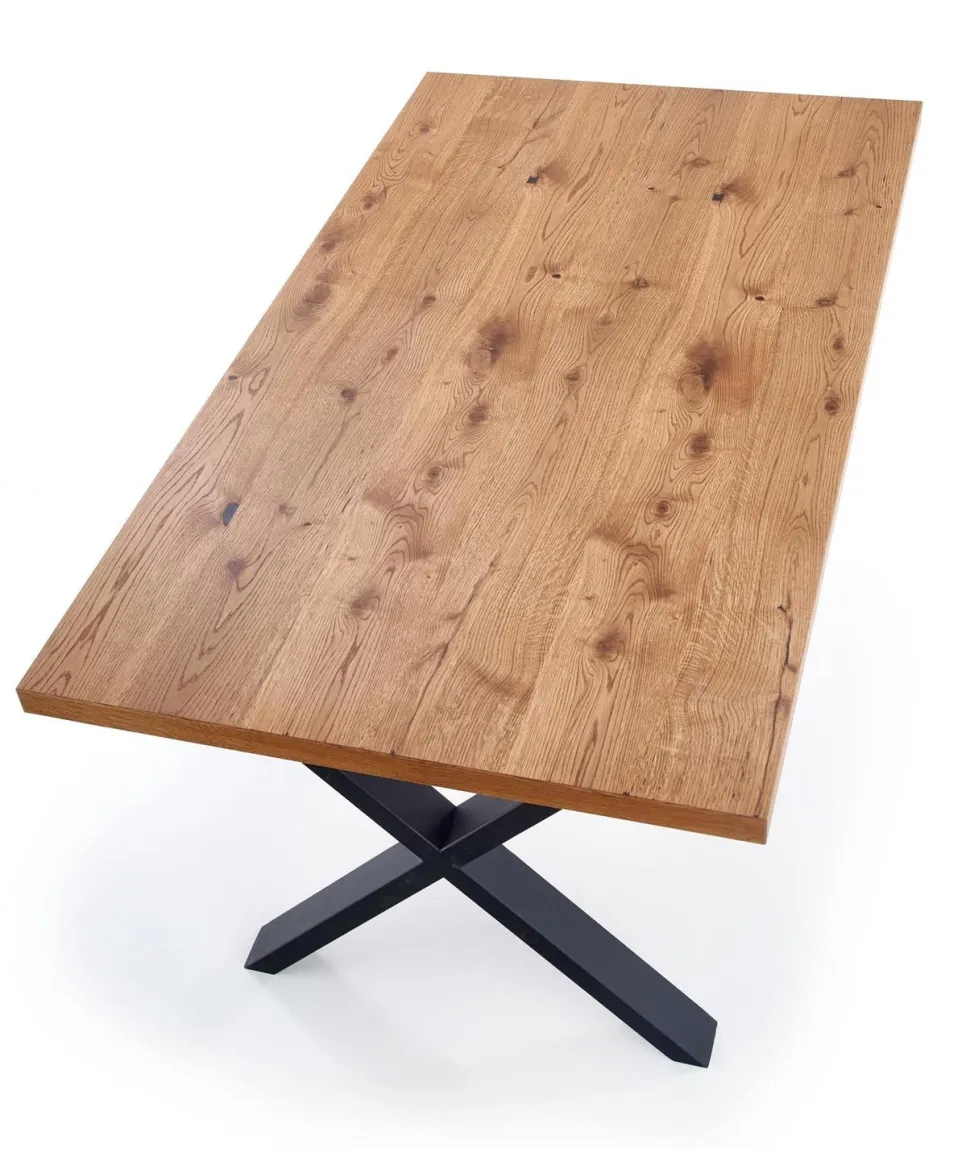 Blat wykonany został z wysokiej jakości płyty fornirowanej, która jest bardzo trwała i łatwa w utrzymaniu czystości. Na obrzeżach zastosowano drewno lite, co dodaje mu elegancji i stylu. Nogi wykonane z malowanej proszkowo stali zapewniają stabilność i wytrzymałość, a ich czarny kolor doskonale kontrastuje z jasnym dębowym blatem. Ten funkcjonalny stół to doskonała propozycja dla osób, które cenią sobie wygodę i praktyczność.