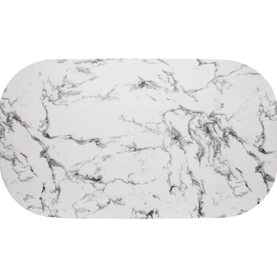 - Stylowa konstrukcja: Owalny blat z hartowanego szkła w stylu marmuru łączy elegancję z nowoczesnością, nadając wnętrzu luksusowy wygląd.