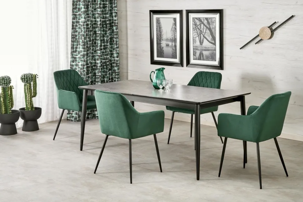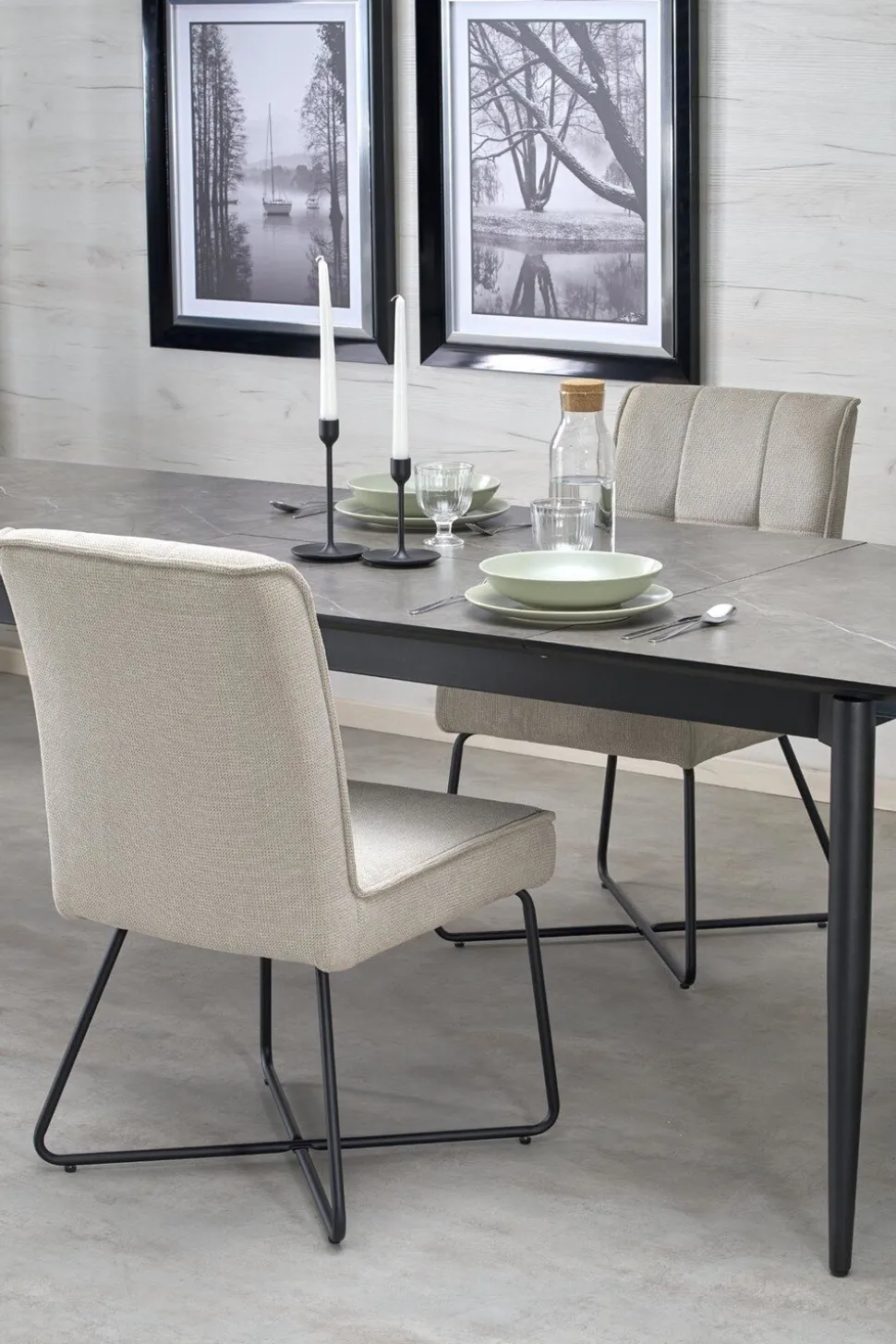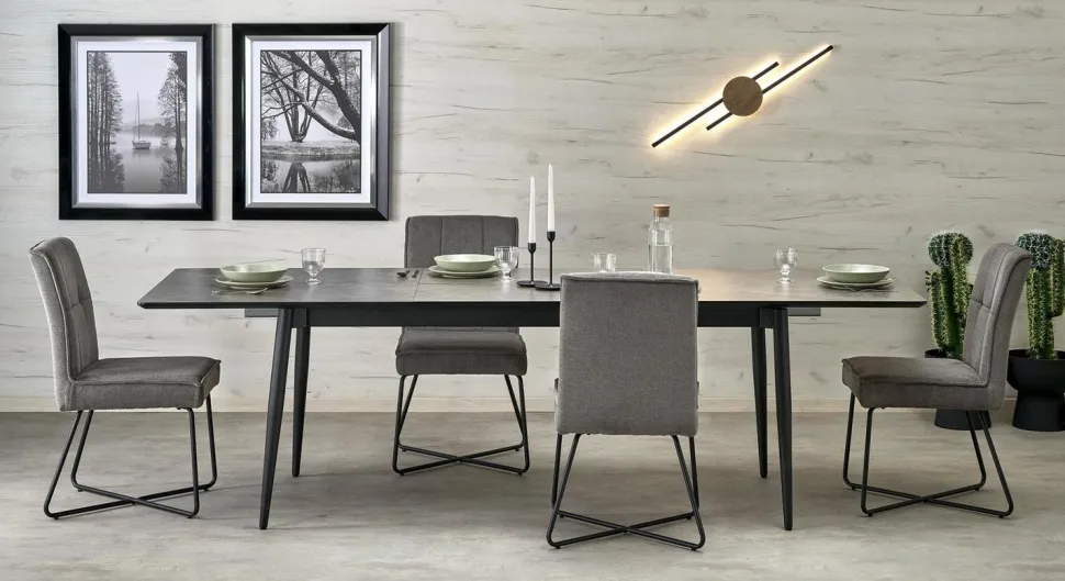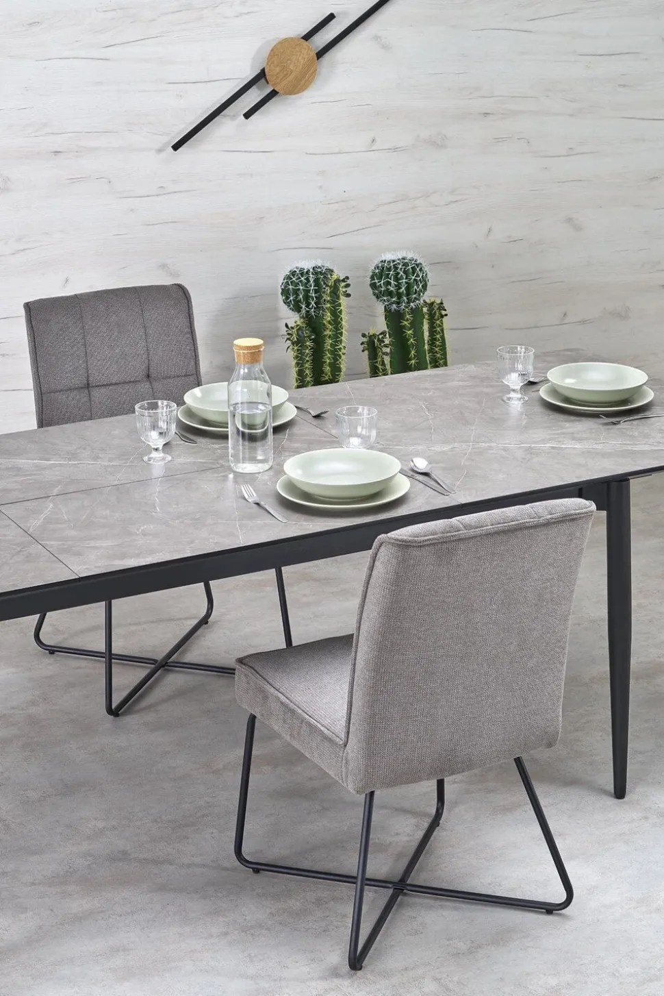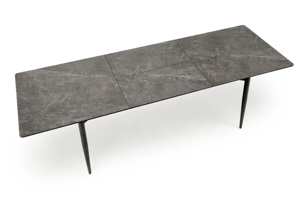Rozkładany stół Ariaster w kolorze popielatego marmuru z czarnymi nogami to funkcjonalny i elegancki mebel, który idealnie wpisuje się w nowoczesne wnętrza. Dzięki możliwości rozłożenia od 180 cm do 260 cm, stół ten doskonale sprawdzi się zarówno podczas codziennych posiłków, jak i większych spotkań towarzyskich. Jego stylowy design, z blatem imitującym popielaty marmur, nadaje wnętrzu luksusowego charakteru, jednocześnie zapewniając praktyczność w codziennym użytkowaniu.