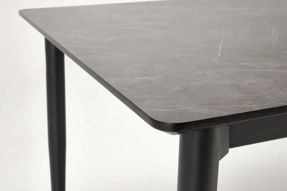 Blat wykonany z wysokiej jakości MDF pokryty jest melaminą, co czyni go odpornym na zarysowania i łatwym w utrzymaniu czystości. Czarna, malowana proszkowo stalowa konstrukcja nóg nie tylko zapewnia stabilność, ale także dodaje nowoczesnego, industrialnego akcentu do wyglądu stołu. Stół Ariaster to idealne połączenie estetyki i funkcjonalności, które wpisuje się w nowoczesne i minimalistyczne aranżacje wnętrz.
