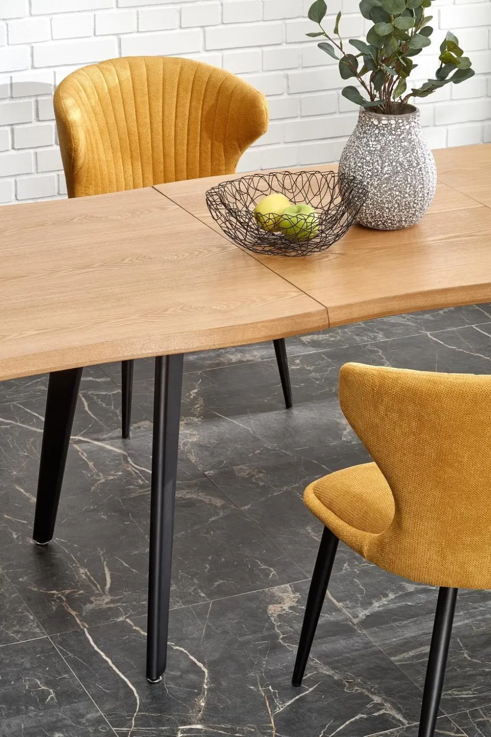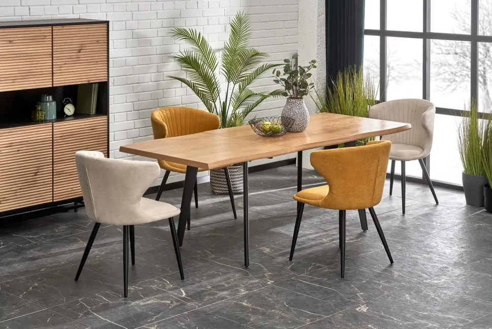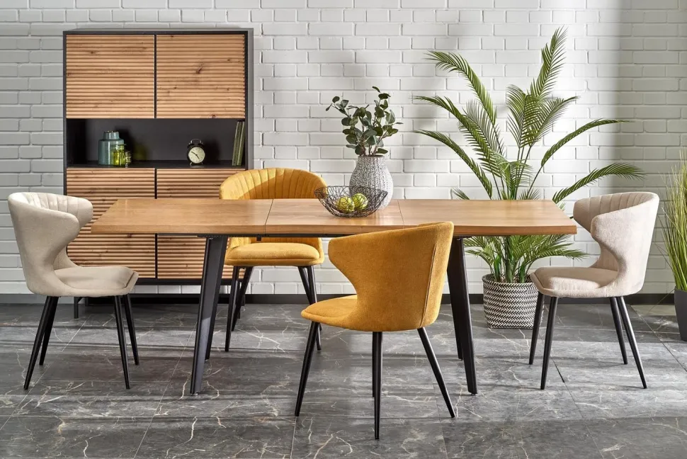 Elegancki styl rozkładanego stołu Sonik od Intesi. Wykończony z MDF fornirowanego naturalną okleiną, stylowy rozkładany stół jest idealny na każde spotkanie lub wydarzenie. Dodatkowo, jest on rozkładany, aby pomieścić aż do 8 osób! Po zakończeniu użytkowania wkładkę stołu można schować pod blatem, co pomaga utrzymać porządek i zaoszczędzić miejsce w pomieszczeniu. Dodaj trochę śmiałości do swojej przestrzeni już dziś.