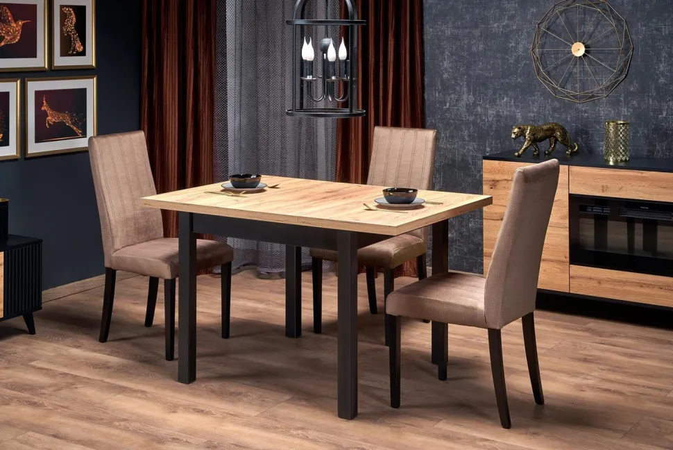 Tiago to wszechstronny stół, który nie tylko dodaje stylu Twojej jadalni, ale również oferuje funkcjonalność. Jego rozkładany mechanizm umożliwia regulację długości, co pozwala na dostosowanie go do Twoich potrzeb. Po rozłożeniu osiąga imponującą długość 125 cm, zapewniając wystarczającą przestrzeń dla rodzinnych spotkań i przyjęć.