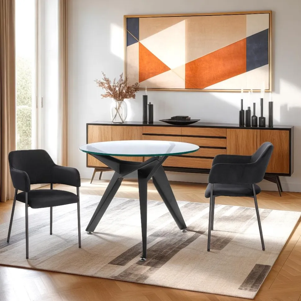 Stół Troy dzięki swojej uniwersalnej kolorystyce – czarnym nogom i transparentnemu blatu – doskonale wpasuje się w każde wnętrze, niezależnie od jego stylu. Czy to loft, minimalizm, nowoczesność czy skandynawski design – Stół Troy zawsze będzie wyglądał elegancko i stylowo. Jest to mebel, który nie tylko spełni swoją funkcję, ale również stanie się dekoracyjnym elementem przestrzeni.