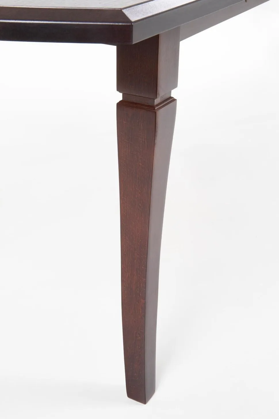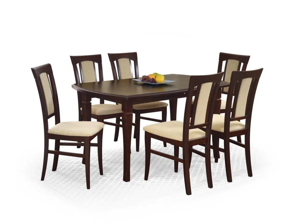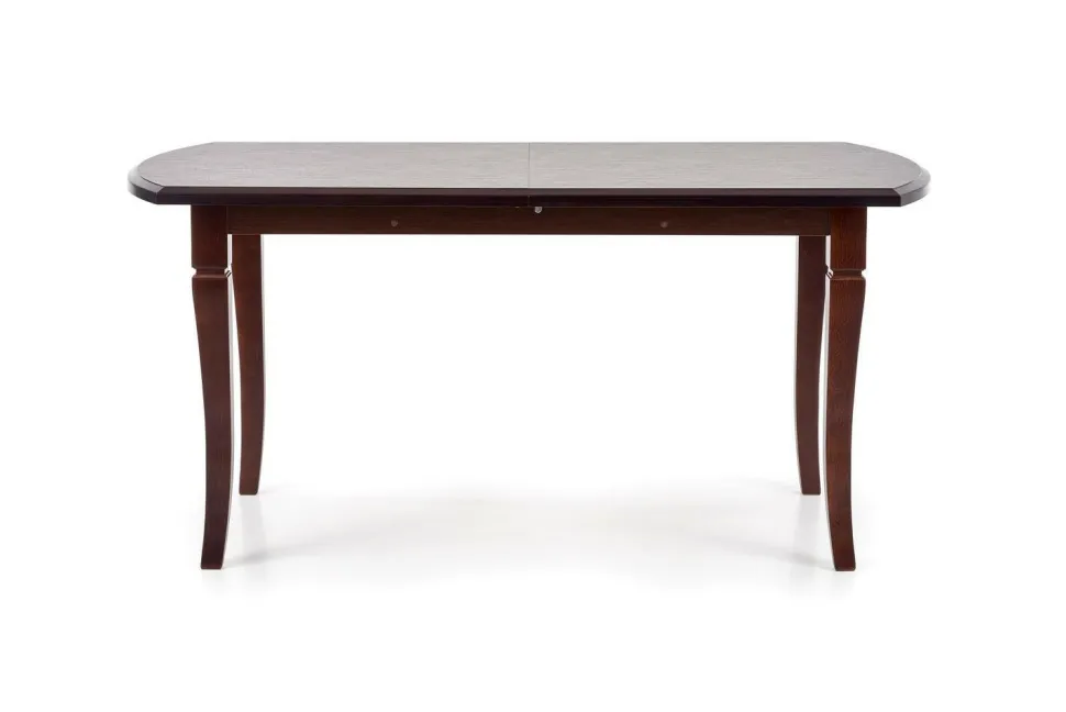 Wymiary stołu to 160-240/90/74 cm, co oznacza, że może on pomieścić zarówno 6, jak i 10 osób.Blat stołu został wykonany z płyty MDF laminowanej, co zapewnia nie tylko estetyczny wygląd, ale także łatwość w utrzymaniu czystości. Nogi stołu natomiast wykonane są z drewna litego bukowego, co dodaje mu eleganckiego charakteru i zapewnia stabilność.Stół rozkładany jest dostępny w kolorze ciemnego orzecha, który doskonale pasuje do różnych aranżacji wnętrz.