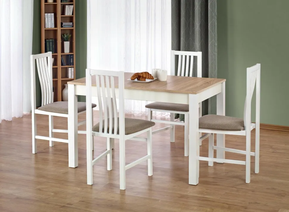 - Blat stołu wykonany z płyty laminowanej oraz obrzeża z technologią ABS zapewniają trwałość i łatwość w utrzymaniu czystości. Nogi stołu z laminowanego MDF-u gwarantują stabilność i solidność.