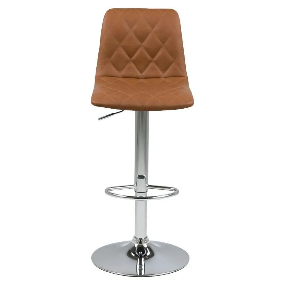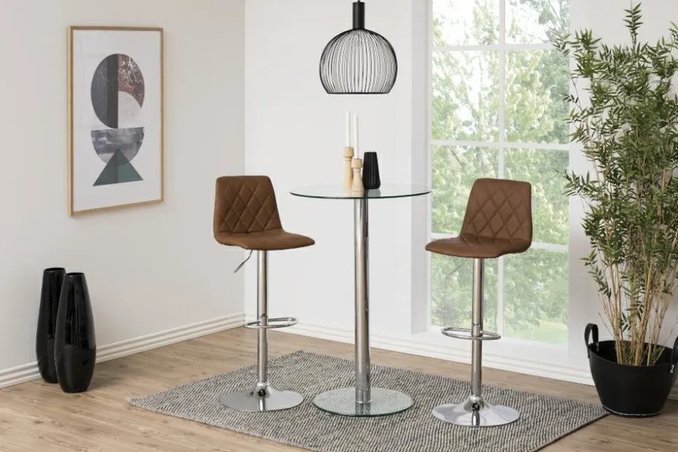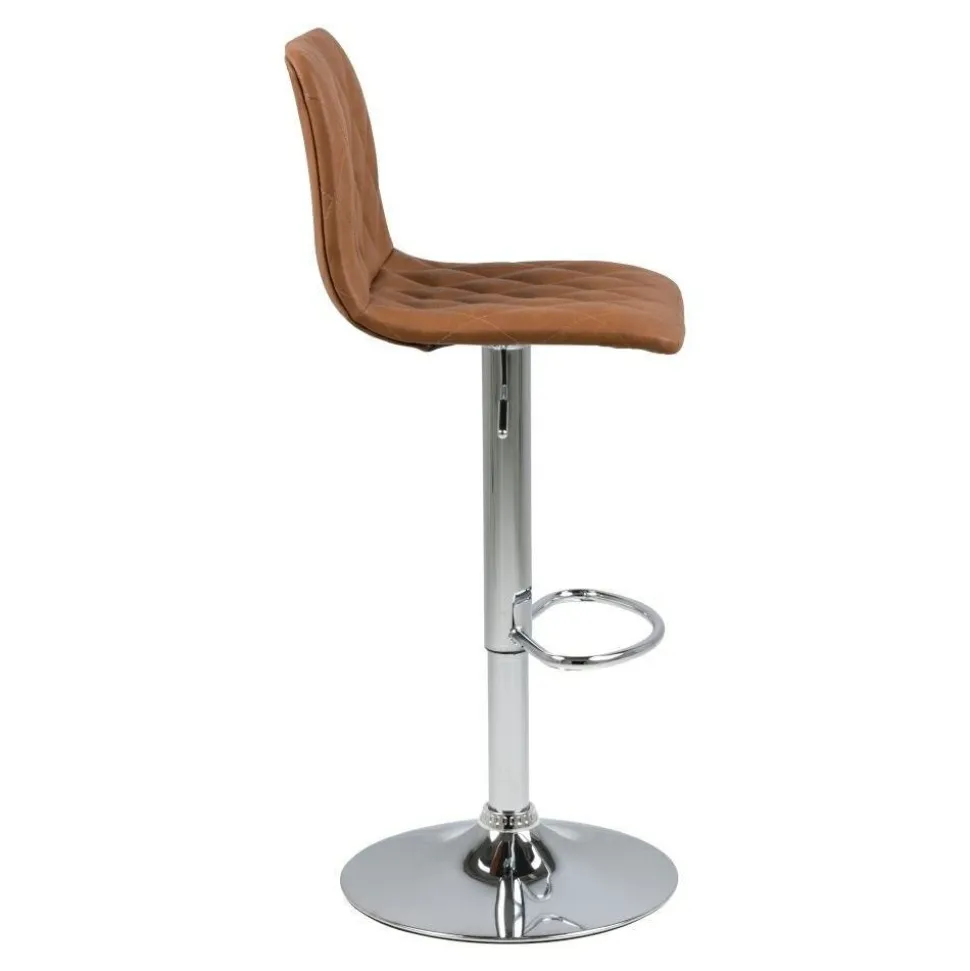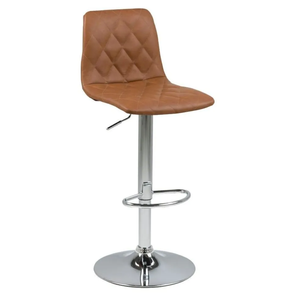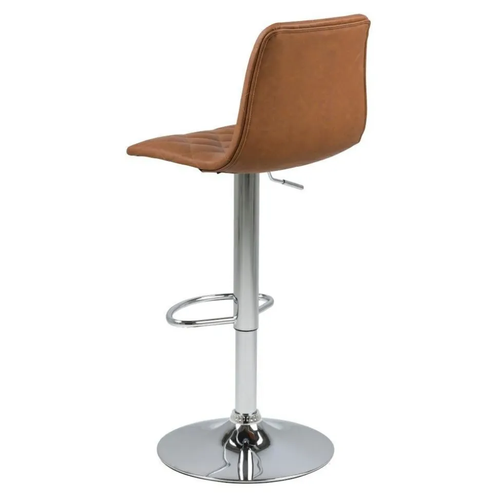 Stołek barowy Emu to tapicerowany eko skórą stołek na wysokiej, chromowanej nodze. Siedzisko stołka to miękka gąbka obita pikowaną eko skórą. Zostało ono umieszczone na metalowej, chromowanej podstawie. Stołek posiada regulację wysokości. Na nodze stołka został umieszczony dodatkowo podnóżek, który nie tylko ułatwia wejście na stołek, ale również jest podporą dla nóg. Waga: 6,7 kg.