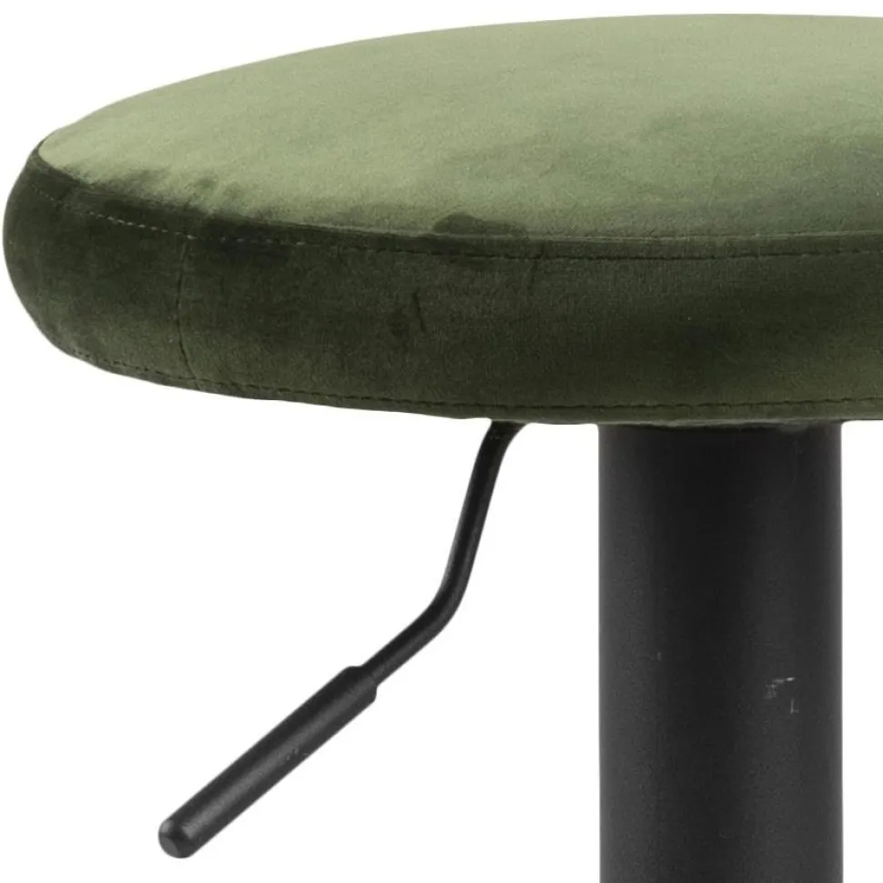 Stołek barowy Finch będzie idealnym siedziskiem przy kuchennej wyspie. Na metalowej, pomalowanej proszkowo na kolor czarny stopie, znajduje się siedzisko, które dla wygody obszyte zostało tkaniną VIC fabric forest zielony 68AC. Siedzisko wyposażono w mechanizm obrotowy oraz regulujący wysokość umożliwiający dopasowanie do postury użytkownika. Komfort z korzystania ze stołka barowego Finch dopełnia umiejscowiony na konstrukcji podstawy elegancki podnóżek. Minimalna wysokość stołka wynosi 62 cm, maksymalna 82 cm. Maksymalne obciążenie stołka wynosi 120 kg. Waga: 5,7 kg.