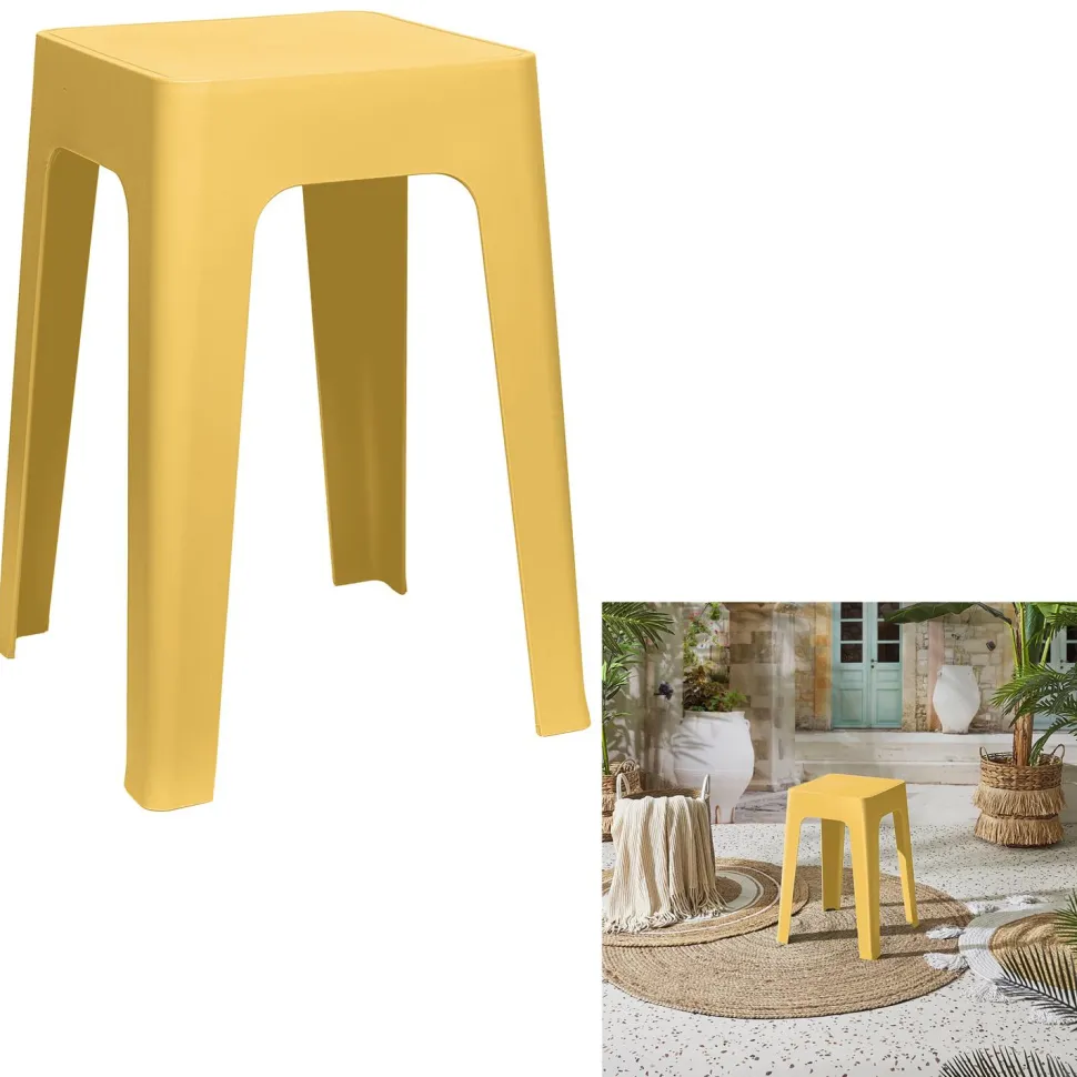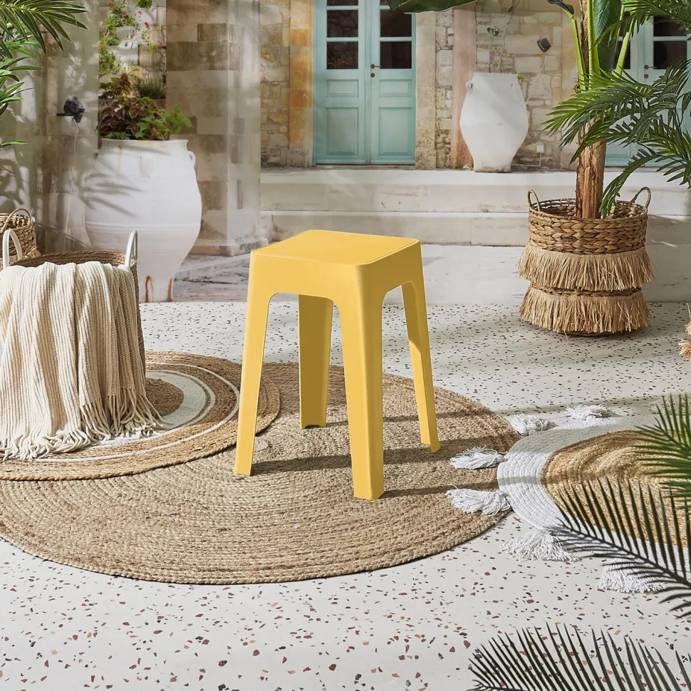 - Minimalistyczny design i żółty kolor stołka sprawiają, że doskonale komponuje się z różnymi stylami wnętrz.