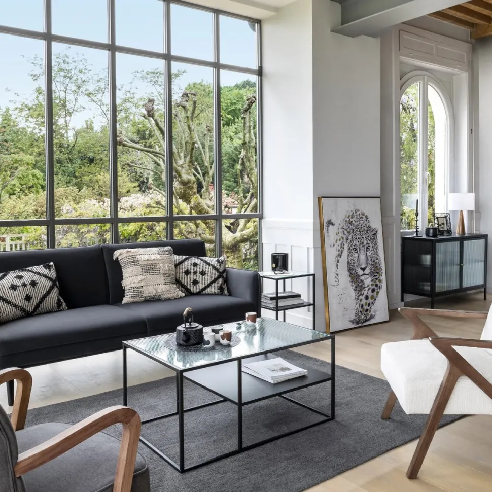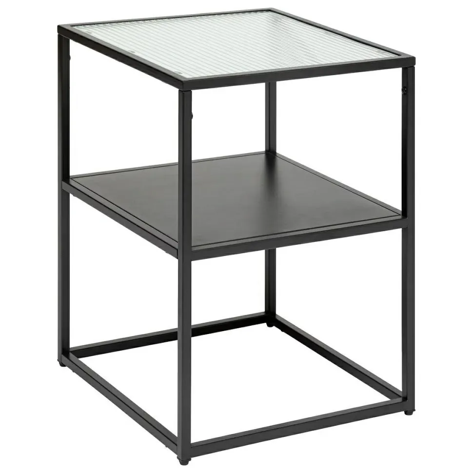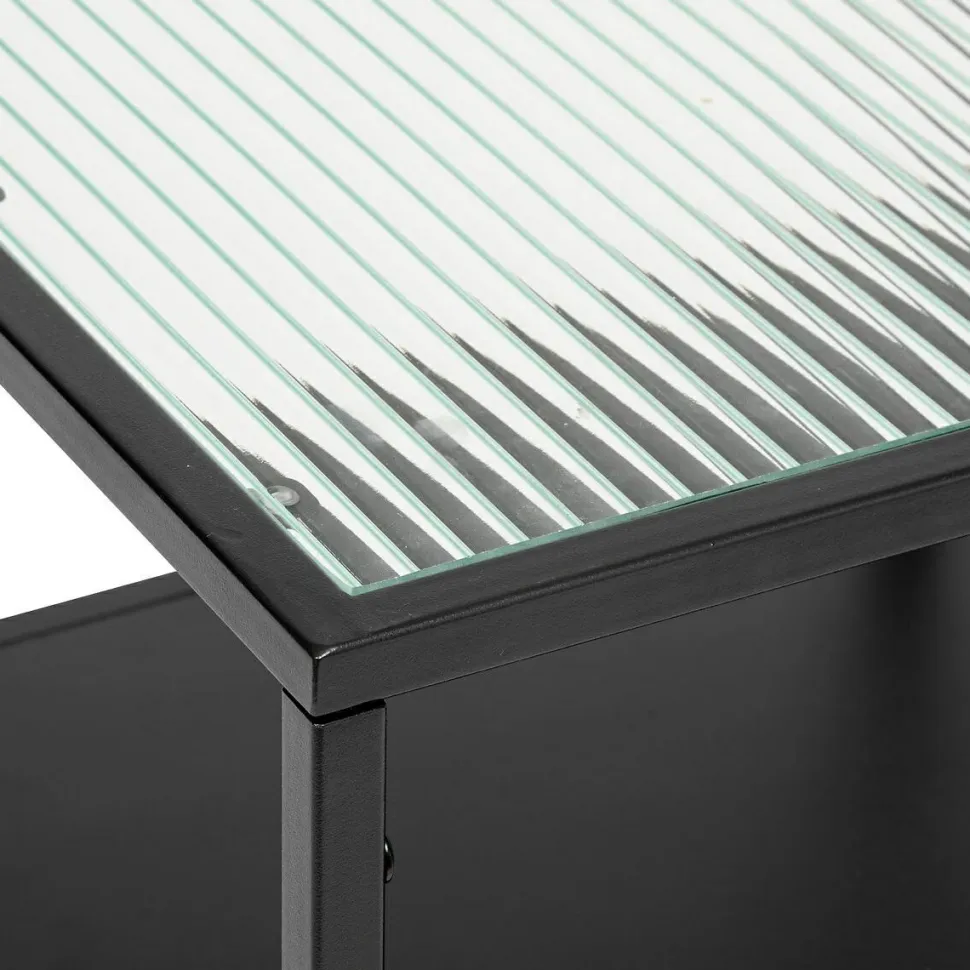Stolik Aldir w kolorze czarnym to elegancki i funkcjonalny mebel, który doskonale wpasowuje się w loftowe i nowoczesne wnętrza. Wykonany z wytrzymałego szkła hartowanego na blacie oraz stali na ramie i nogach, zapewnia solidność i trwałość. Jego ozdobny ryflowany blat nadaje mu niepowtarzalny charakter, dodając jednocześnie subtelnego uroku i designerskiego wyglądu.