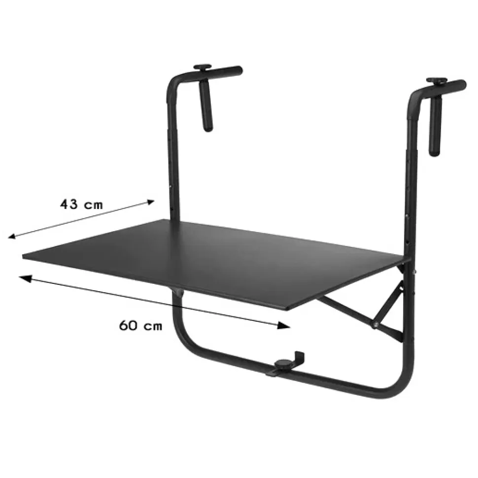 Metalowy stolik balkonowy ZOLA to poręczny blat przeznaczony do zawieszania na poręczy balkonowej, który pozwoli nam wypić poranną kawę lub zjeść śniadanie na świeżym powietrzu. Blat stolika o wymiarach 63×43 cm umożliwia na miły posiłek nawet dla dwóch osób. Dodatkowo został on ocynkowany, więc jest odporny na działanie warunków atmosferycznych, które często pojawiają się niespodziewanie. Stolik posiada maksymalne obciążenie aż 50 kg, więc bez problemu można postawić na nim na przykład kwiaty lub inne dekoracje. ZOLA posiada możliwość regulacji wysokości, aby umożliwić dopasowanie jej do swoich preferencji.
