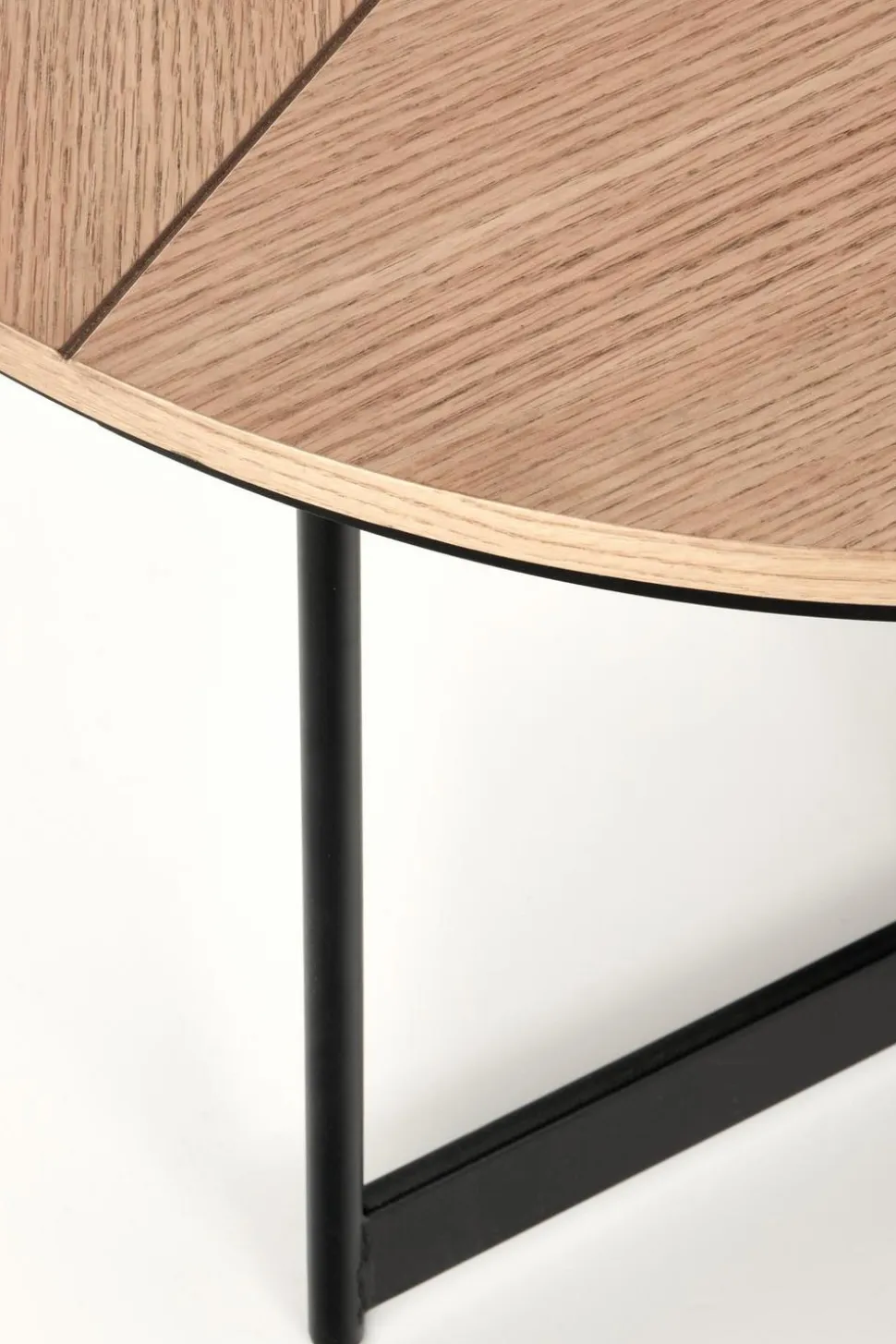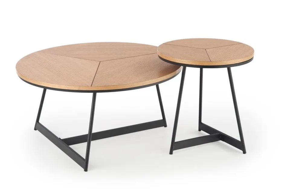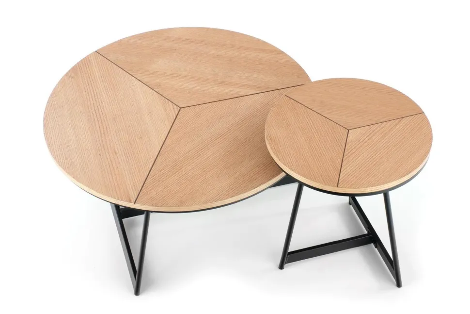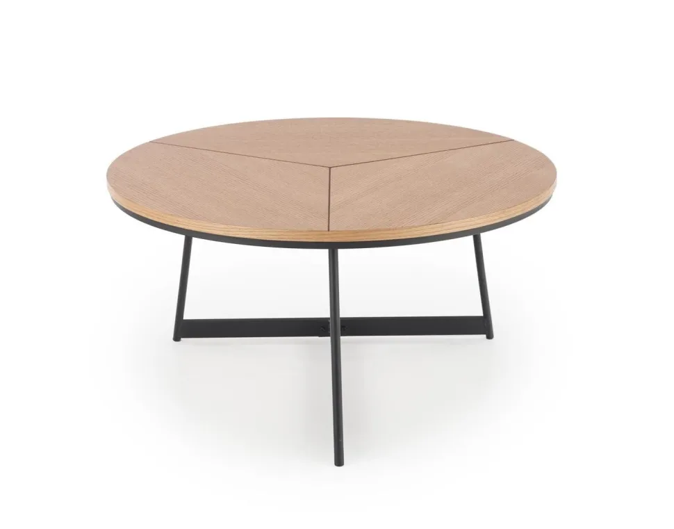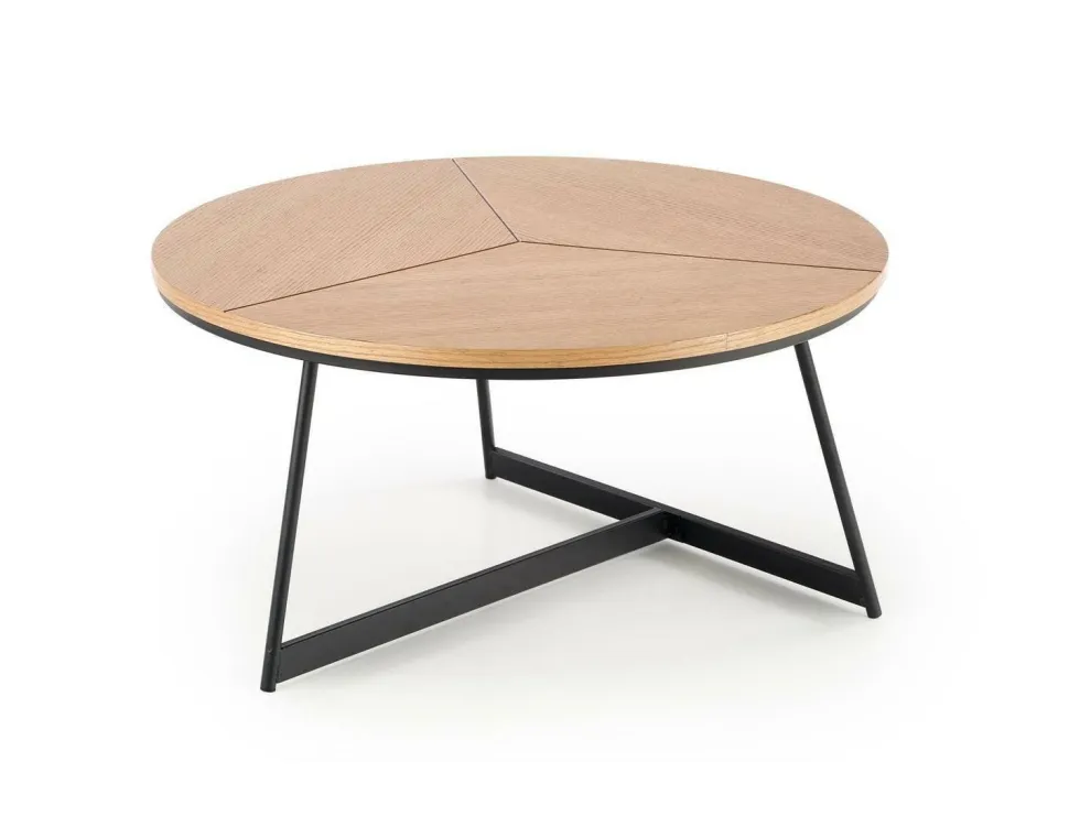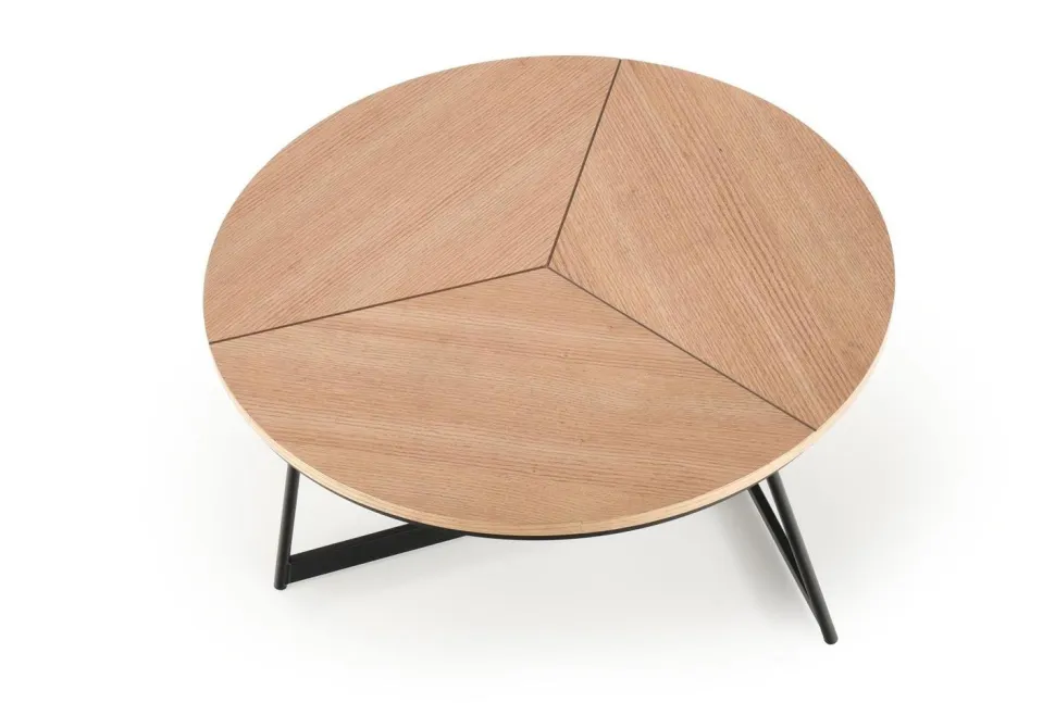 Stolik został wykonany z wysokiej jakości materiałów, co gwarantuje jego trwałość i solidność. Blat wykonany z MDF w okleinie naturalnej prezentuje się niezwykle efektownie, dodając wnętrzu ciepła i przytulności. Doskonale komponuje się on z malowanym proszkowo stelażem wykonanym z metalu w eleganckim, czarnym kolorze, co nadaje stolikowi nowoczesnego charakteru. Okrągły kształt blatu stolika dodaje mu lekkości i harmonii, a zarazem zapewnia praktyczne miejsce do przechowywania różnorodnych przedmiotów. Stabilny stelaż metalowy jest nie tylko wytrzymały, ale także stanowi stylowy kontrast wobec naturalnego drewna, podkreślając industrialny charakter wnętrza.