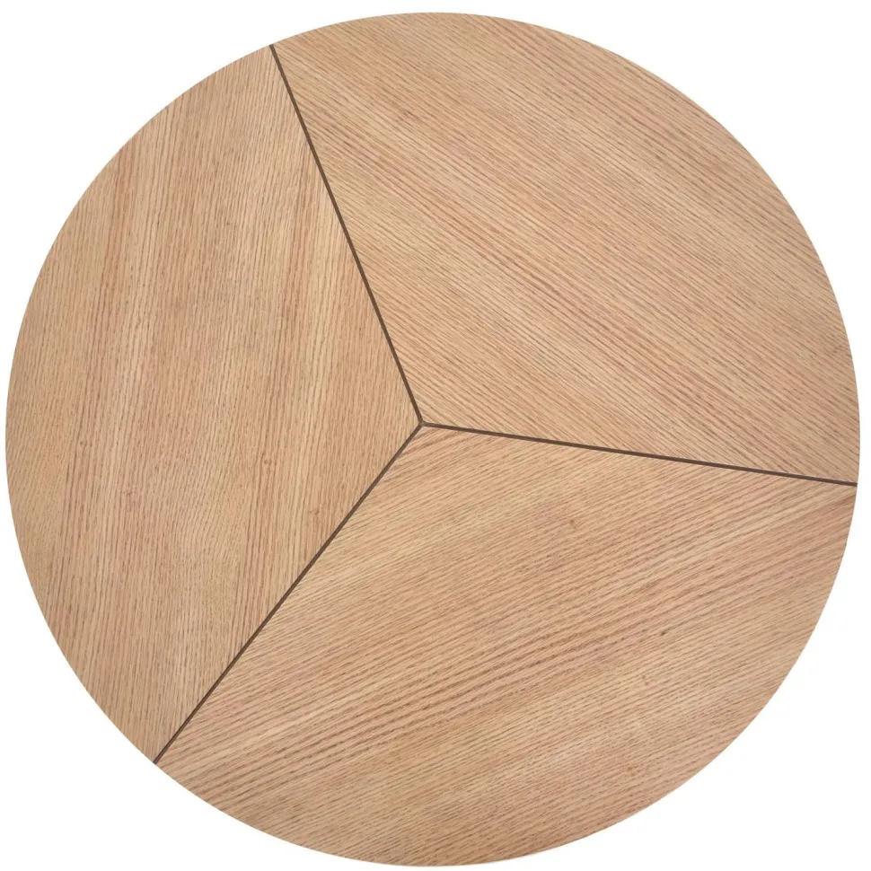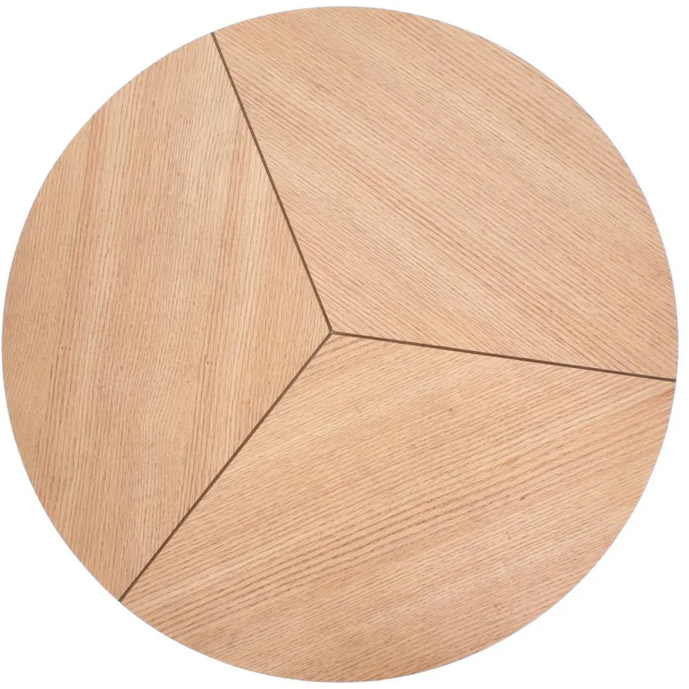 - Okrągły blat z okleiną naturalną w kolorze dębu naturalnego dodaje ciepła i elegancji.