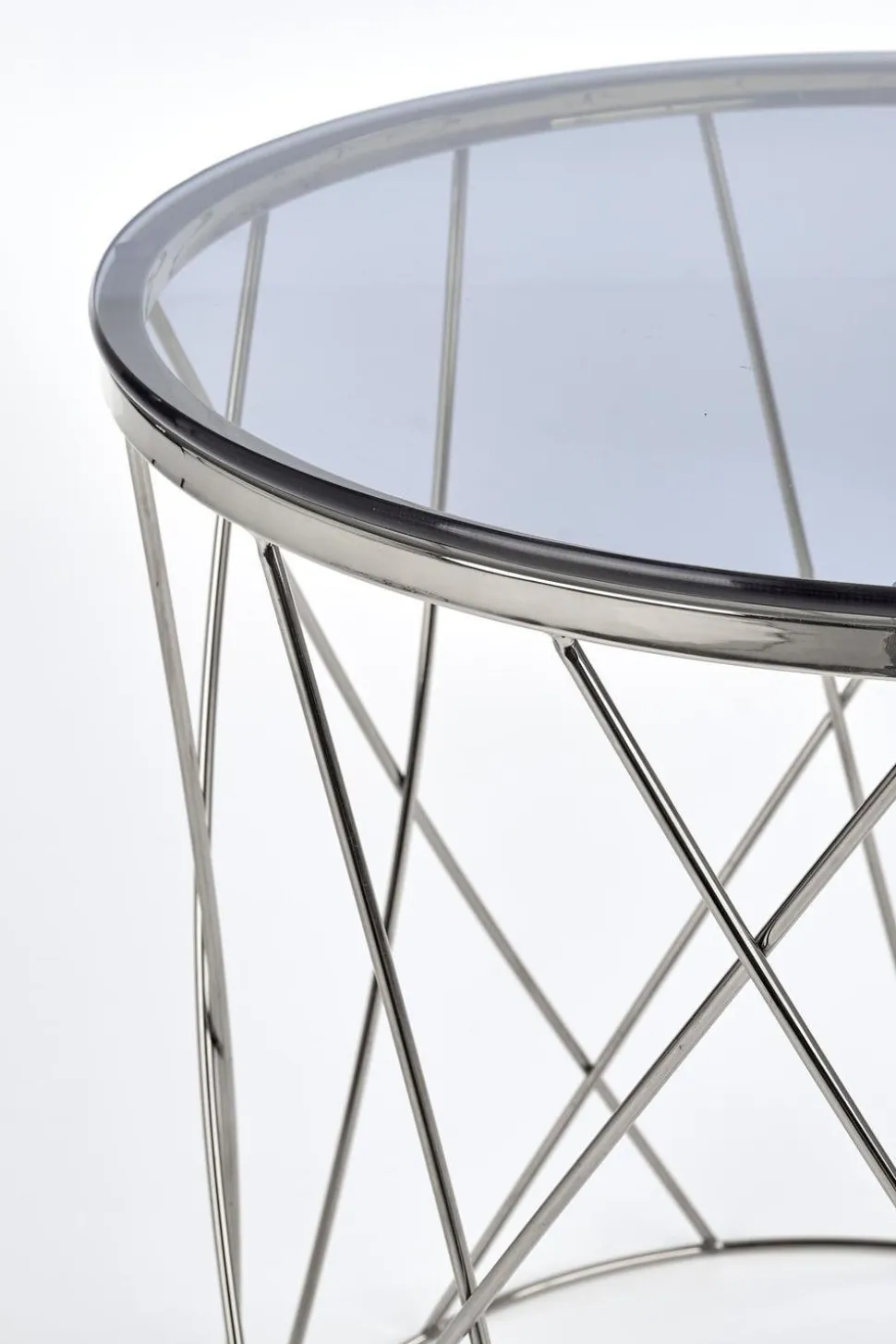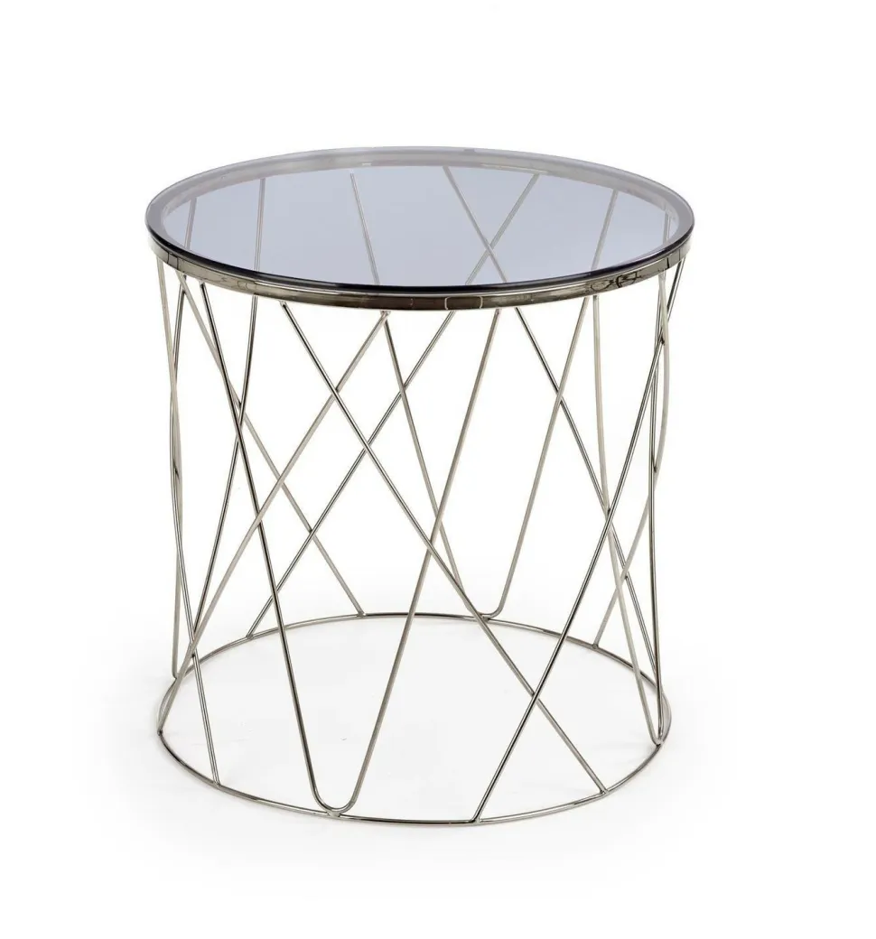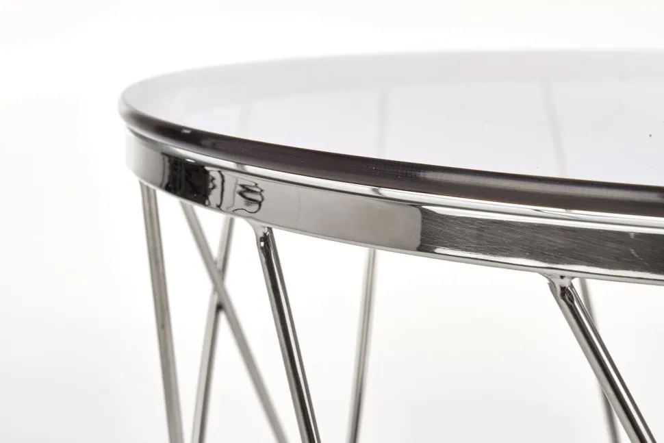 Wymiary 55/55 cm nadają stolikowi intymny, zachęcający charakter, który zachęca do zajęcia miejsca i relaksu. Przydymione szkło jest zabarwione na subtelny odcień szarości, dzięki czemu jego błyszczący połysk pięknie odbija światło, a chromowana podstawa idealnie kontrastuje z blatem.