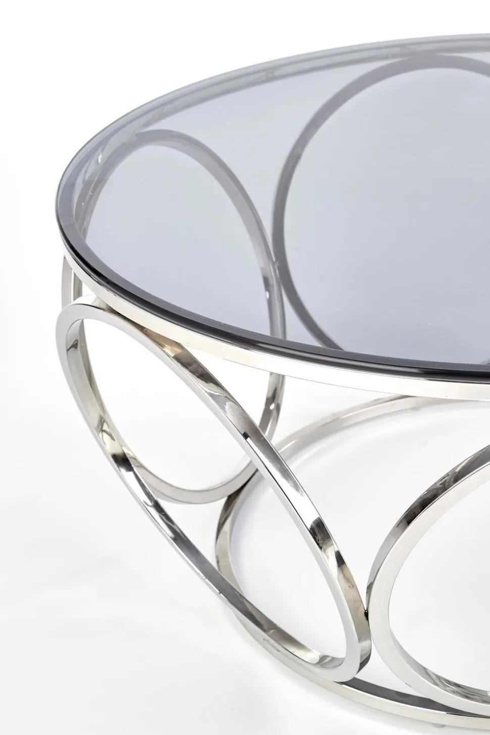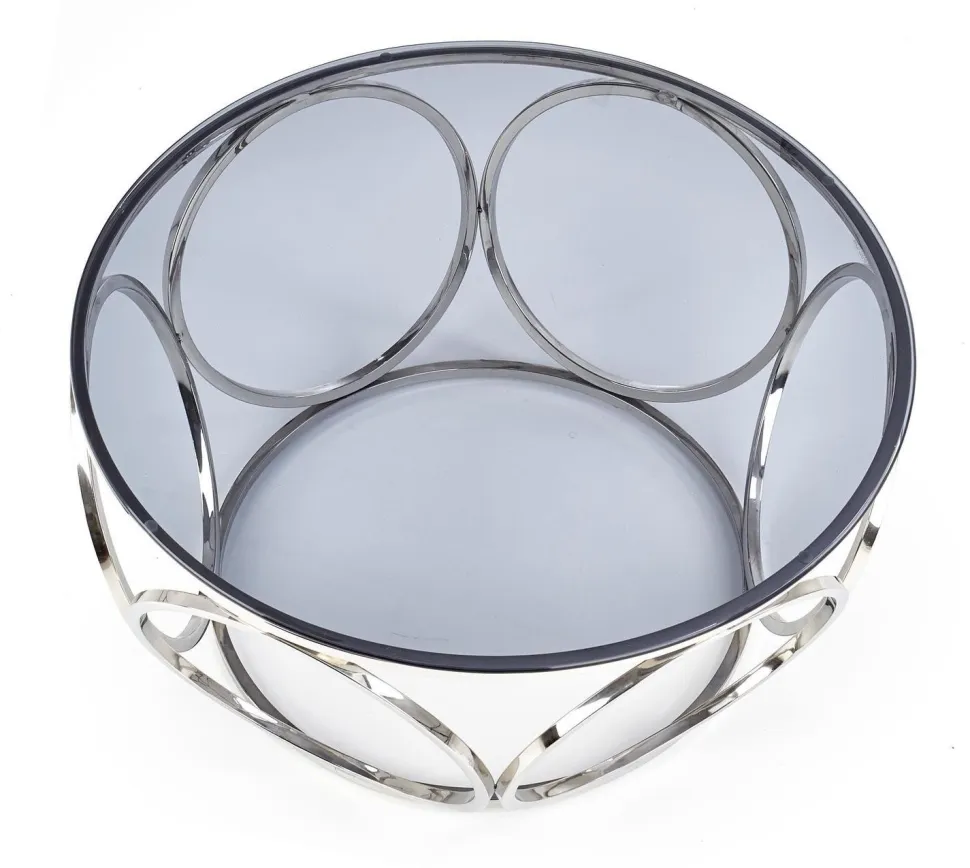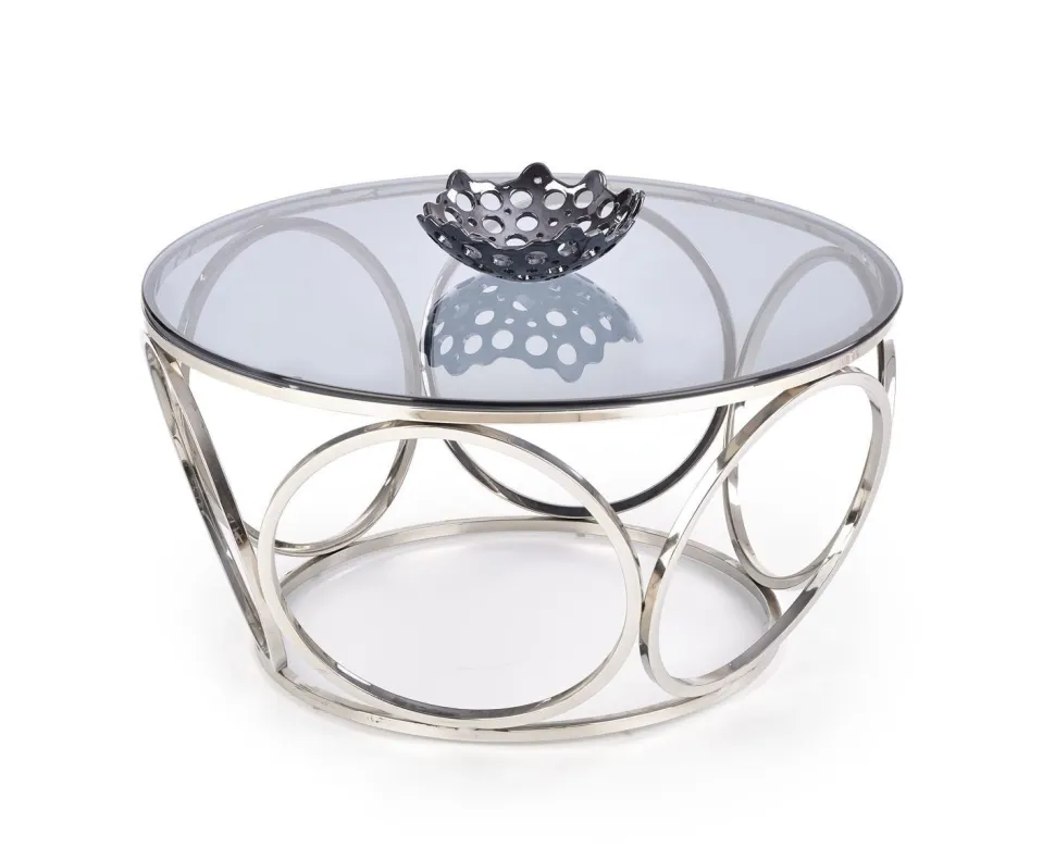 Wymiary80/44 cm nadają stolikowi intymny, zachęcający charakter, który zachęca do zajęcia miejsca i relaksu. Przydymione szkło jest zabarwione na subtelny odcień szarości, dzięki czemu jego błyszczący połysk pięknie odbija światło, a srebrna podstawa idealnie kontrastuje z blatem.