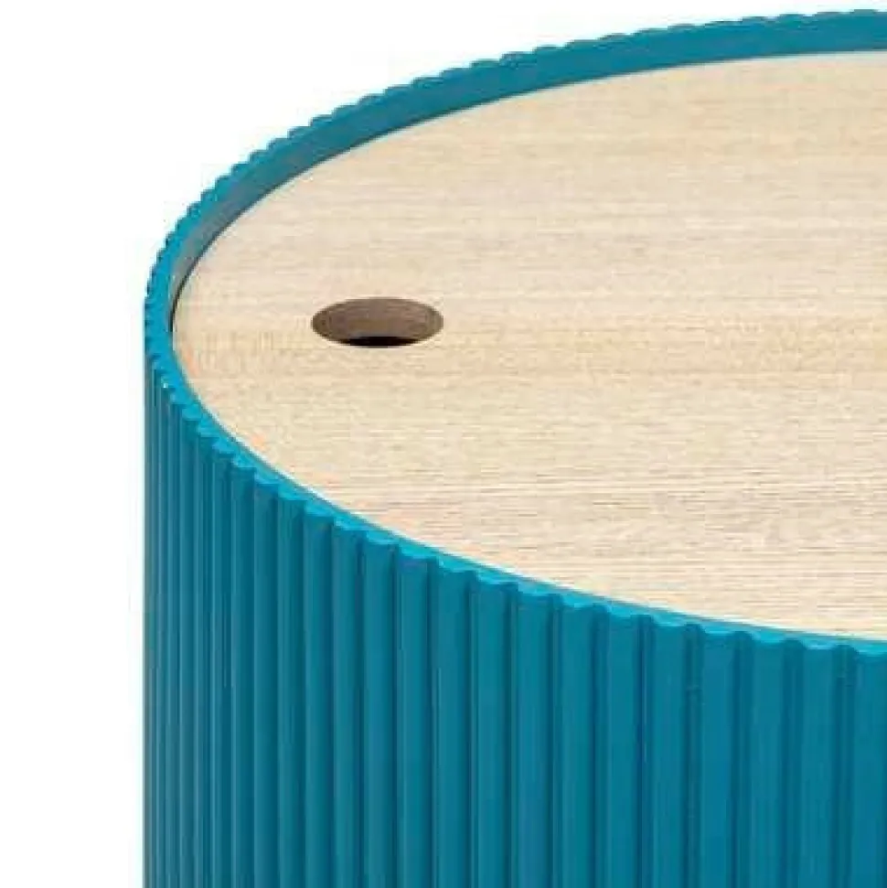 Okrągły stolik kawowy EnolaSniebieski|Atmosphera Okrągły stolik kawowy Enola od Atmosphery doda nowoczesnego, unikalnego akcentu do Twojej przestrzeni.Wykonany z wytrzymałej płyty MDF i wyposażony w fornirowany blat imitujący drewno, mebel jest idealny do małych wnętrz. Dodatkowoposiada otwór w blacie, który służy zarówno jako uchwyt, jak i tajne miejsce do przechowywania. Stwórz stylowy i szykowny wygląd ze stolikiem kawowym Enola! Wyjątkowy i nowoczesny mebel wniesie indywidualny styl do każdego pomieszczenia.Okrągła konstrukcjadodaje odrobinę współczesnej elegancji, apołączenie wąskiej, gładkiej części i szerszej części z delikatnym frezowaniem zapewnia ponadczasowy i trwały urok. Solidna płyta MDF jest bardzo wytrzymała i jest dodatkowo uzupełniona blatem z okleiną imitującą drewno. Dzięki otworowi w blacie, który działa jak uchwyt,można podnieść blat i przechowywać w stoliku rozmaite przedmioty. Idealny do dodania oszałamiającego akcentu do każdego małego wnętrza, stolik kawowy Enola jest niezbędnym elementem, który bez wysiłku wzbogaci każde pomieszczenie. O tym warto pamiętać! Unikalny design tworzy nowoczesny i stylowy wygląd pasujący do każdego domu Trwałe materiały zapewniają długotrwałe użytkowanie Ukryty schowek zapewnia dodatkową wartość funkcjonalną