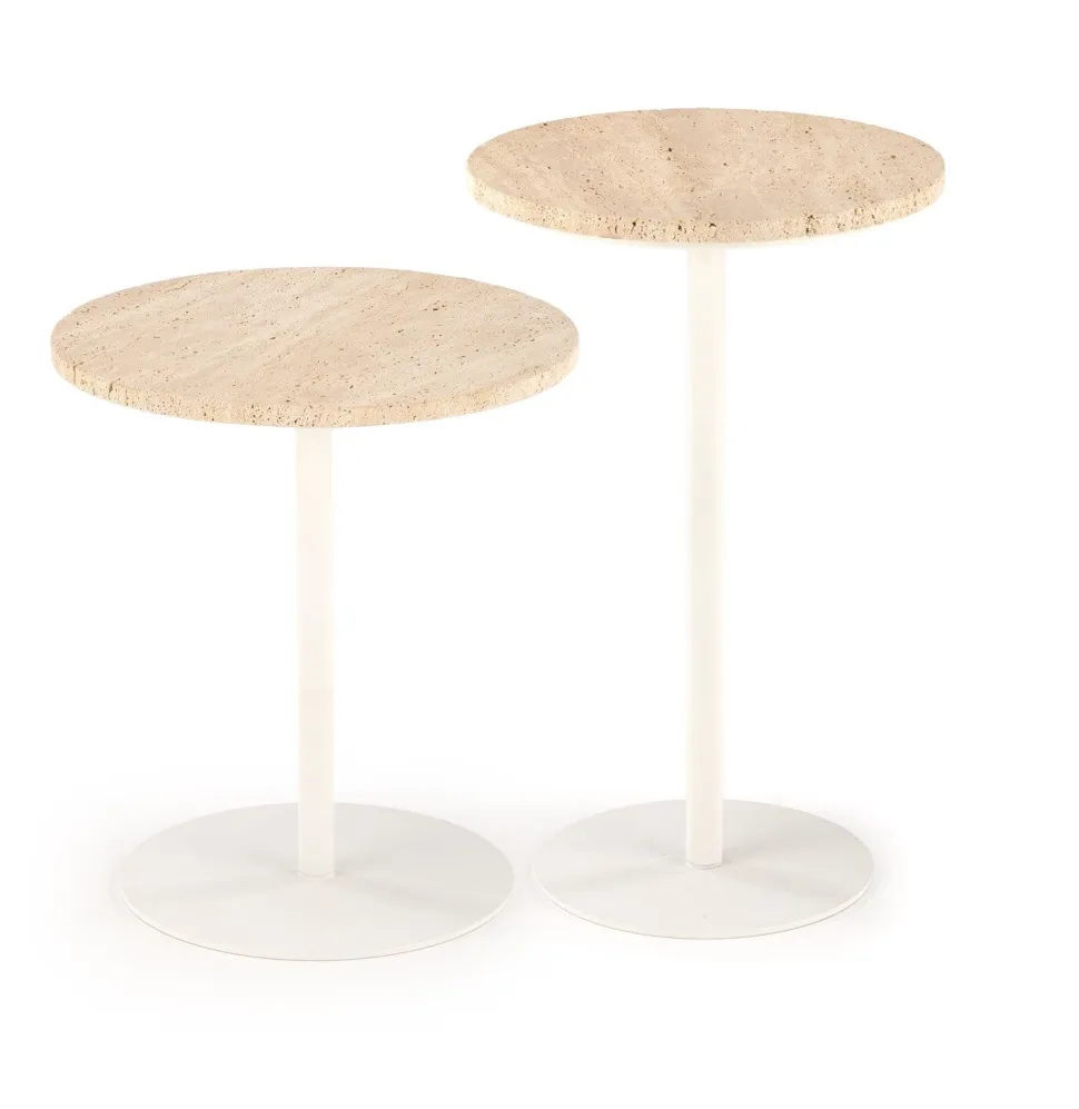 Jedna, solidna noga wykonana ze stali malowanej proszkowo w kolorze białym nie tylko zapewnia stabilność, ale również dodaje nowoczesnego, minimalistycznego charakteru. Połączenie trawertynu i białej stali tworzy efektowne zestawienie, które pasuje zarówno do klasycznych, jak i współczesnych aranżacji wnętrz. Prostota formy oraz wysoka jakość materiałów sprawiają, że stolik Epkos niski jest nie tylko funkcjonalnym meblem, ale także dekoracyjnym elementem każdego salonu.