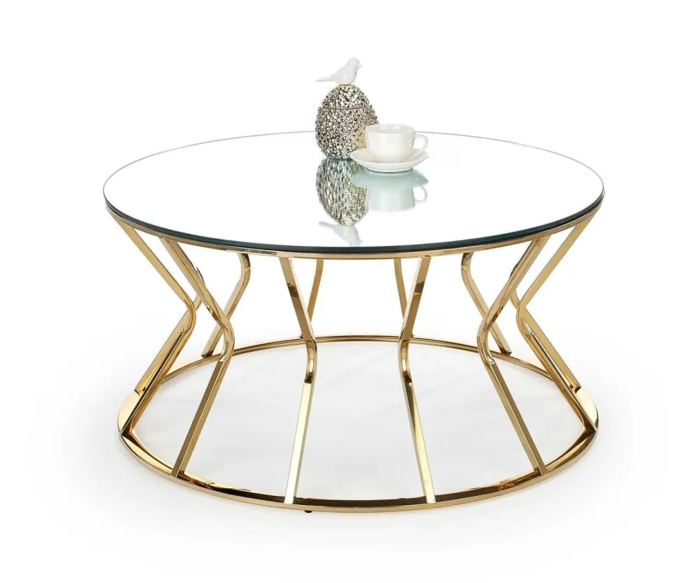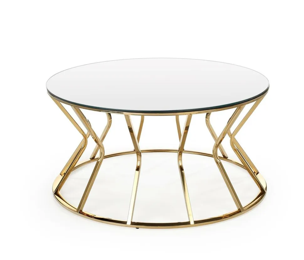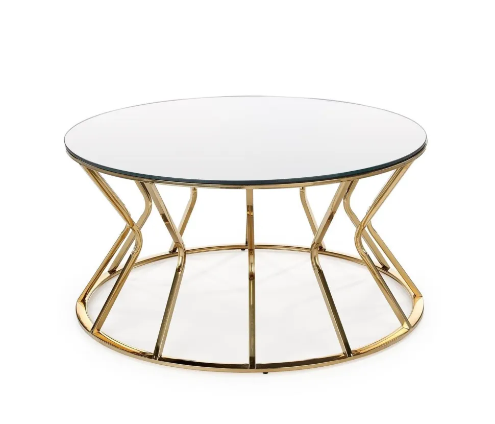 Uzyskaj nowoczesny, efektowny wygląd swojego salonu dzięki temu szklanemu okrągłemu stolikowi kawowemu od Intesi. Wyposażony w złotą, błyszczącą ramę i przezroczysty, szklany blat, oszałamiający element jest idealny do nadania blasku każdej przestrzeni! Ponadto jest wykonany ze stali nierdzewnej, więc wiesz, że będzie trwały.