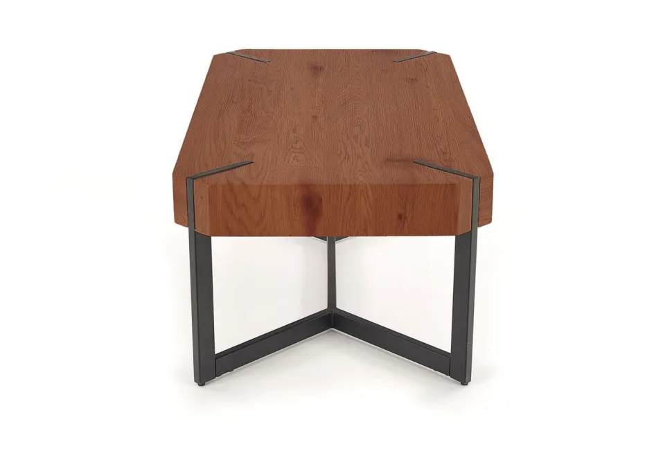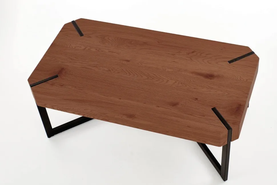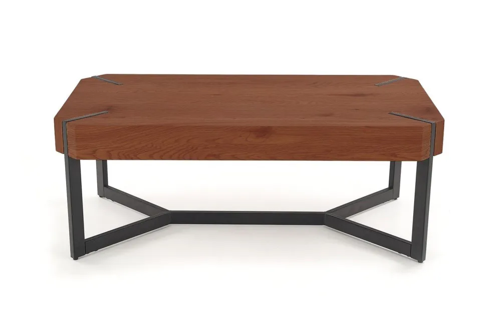 Stolik kawowy Frada w kolorze orzechowym z czarną stalową podstawą to idealny mebel do wnętrz w stylu loftowym. Jego prostokątny blat o wymiarach 110 cm x 60 cm wykonany jest z laminowanego MDF w wykończeniu orzechowym, co nadaje mu elegancki i naturalny wygląd. Stelaż z malowanej proszkowo stali w kolorze czarnym zapewnia stolikowi solidność oraz nowoczesny, industrialny charakter.