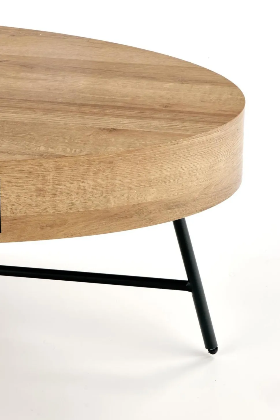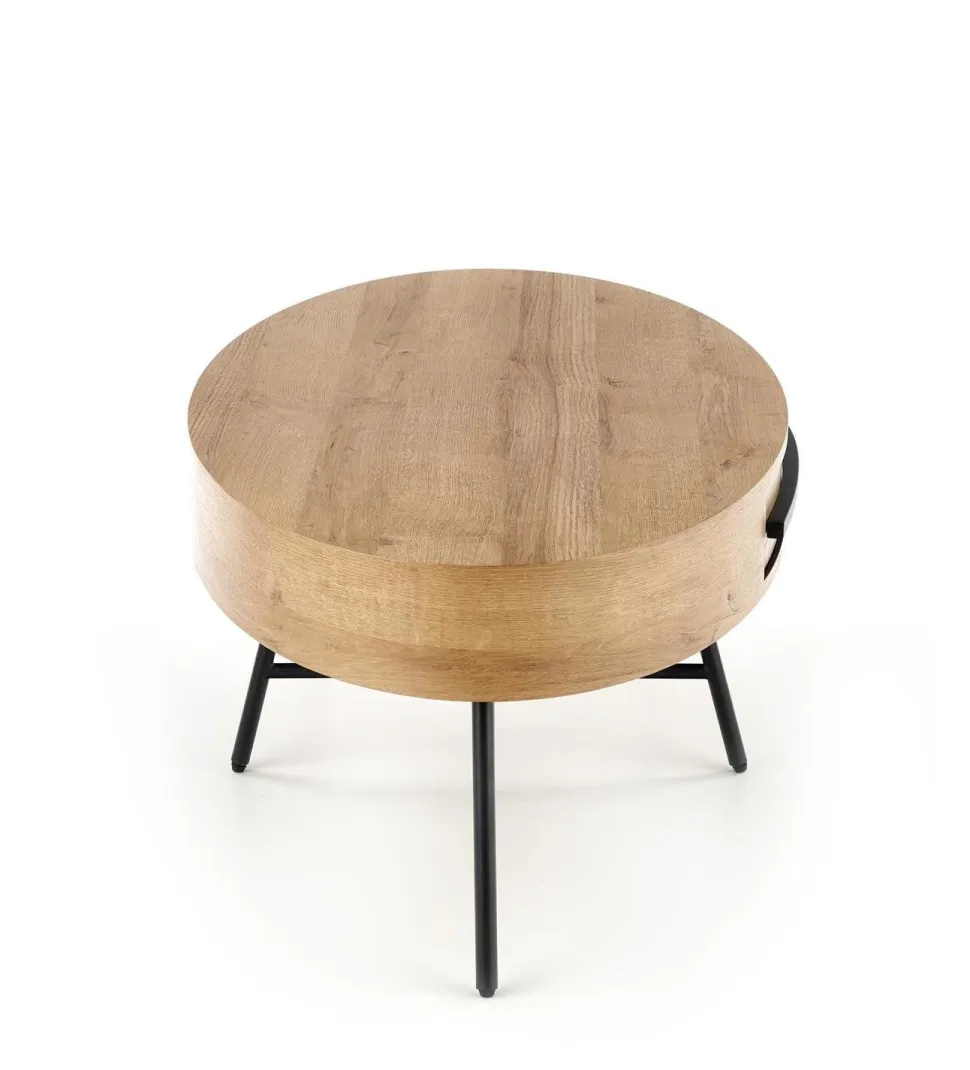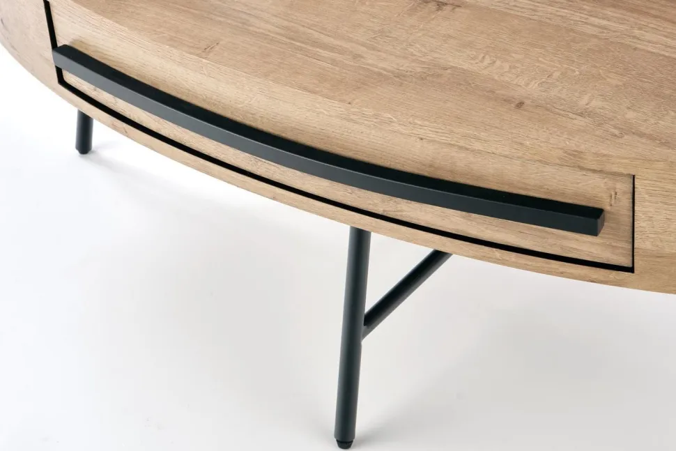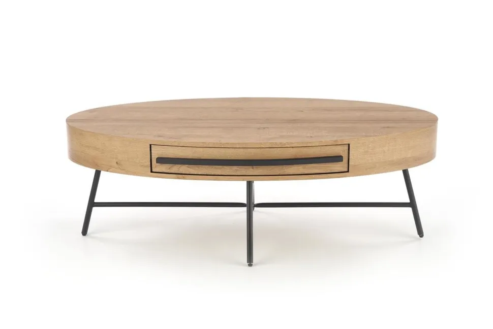 Ten stylowy stolik kawowy to idealne rozwiązanie dla miłośników loftowego stylu wnętrz. Wykonany z najwyższej jakości materiałów, takich jak MDF okleinowany i stal malowana proszkowo, zapewnia nie tylko wysoką trwałość, ale także estetyczny wygląd. Blat w kształcie owalnym o wymiarach 120/60/41 cm w kolorze dąb złoty dodaje elegancji i sprawia, że stolik staje się centralnym punktem salonu.