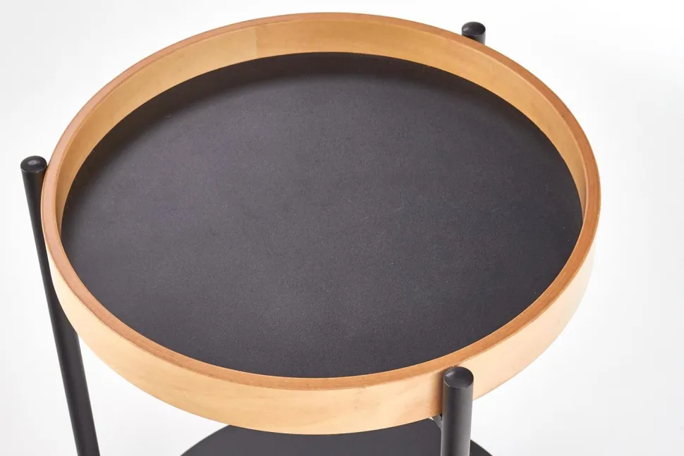 Kolor dąb naturalny w połączeniu z czarnym stelażem tworzy harmonijną kompozycję, która pasuje zarówno do klasycznych, jak i nowoczesnych aranżacji.Stolik Polo został zaprojektowany z myślą o Twojej wygodzie. Jego okrągły blat sklejki giętej oferuje dużo miejsca na kawę, herbatę, książki czy dekoracje. Dodatkowo, półka dolna zapewnia dodatkową przestrzeń do przechowywania czasopism, pilotów czy innych drobiazgów, które chcesz mieć zawsze pod ręką.