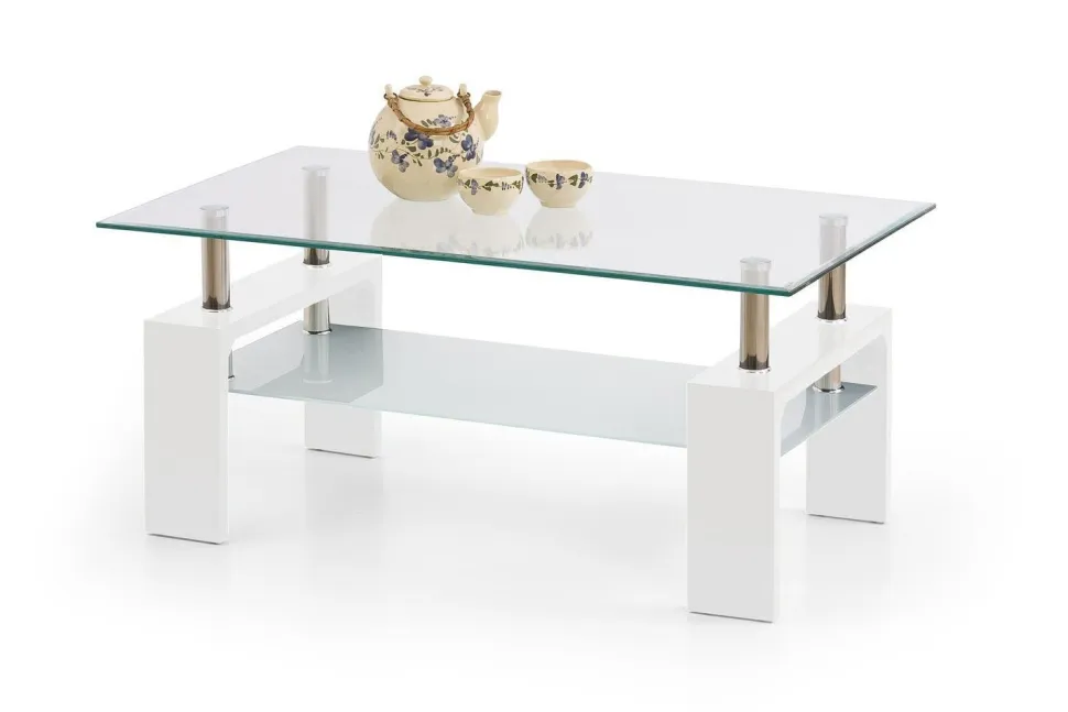 Szukasz klasycznego, wszechstronnego mebla, który będzie idealny do każdego wnętrza? Nie szukaj dalej niż stolik kawowy Rafes Intro! Ponadczasowa konstrukcja wykonana jest z wytrzymałej płyty MDF lakierowanej na biało, z metalową ramą i stylowym szklanym blatem. Jego prostokątny kształt sprawia, że świetnie pasuje do salonu, a dolna półka zapewnia cenne miejsce do przechowywania. Ma tradycyjny styl konstrukcji i ma odpowiednią wysokość (45 cm) i szerokość (100 cm), aby idealnie pasować do niemal każdej przestrzeni. Górna część mebla wykonana jest z przezroczystego szkła, co dodaje mu elegancji, czyniąc go idealnym wyborem do każdego nowoczesnego lub tradycyjnego domu. Niezależnie od tego, czy szukasz dodatkowego miejsca do siedzenia, czy po prostu chcesz dodać trochę nowoczesności do swojego salonu, stolik kawowy Rafes Intro z pewnością ożywi Twój wystrój!