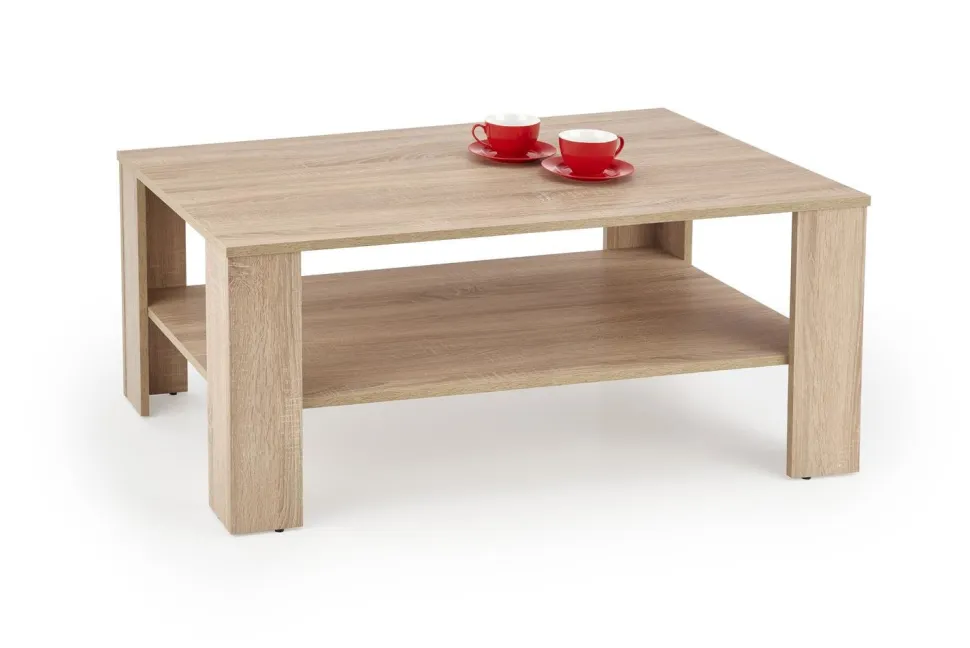 Przedstawiamy stolik kawowy Tastur, idealny dodatek do każdego nowoczesnego salonu! Solidny i stylowy, tradycyjny stolik znaturalnąramą w kolorze dębu sonomaidealnie wpasuje się w każdy wystrój. Wykonany z wysokiej jakości laminatu MDF, stolik kawowy z łatwością wyróżnia się ponadczasowym designem i solidną konstrukcją, zapewniając luksusowy wygląd, który trwa. Dolna półka zapewnia dodatkową stabilność i idealne miejsce do przechowywania książek lub czasopism. Dziękiprostokątnemu kształtowi, szerokości 110 cm i wysokości 53 cm, elegancki stolik kawowy z pewnością przypadnie do gustu. Spraw, aby Twój dom był kompletny i dodaj mu wyrafinowania dzięki stolikowi kawowemuTastur już dziś!