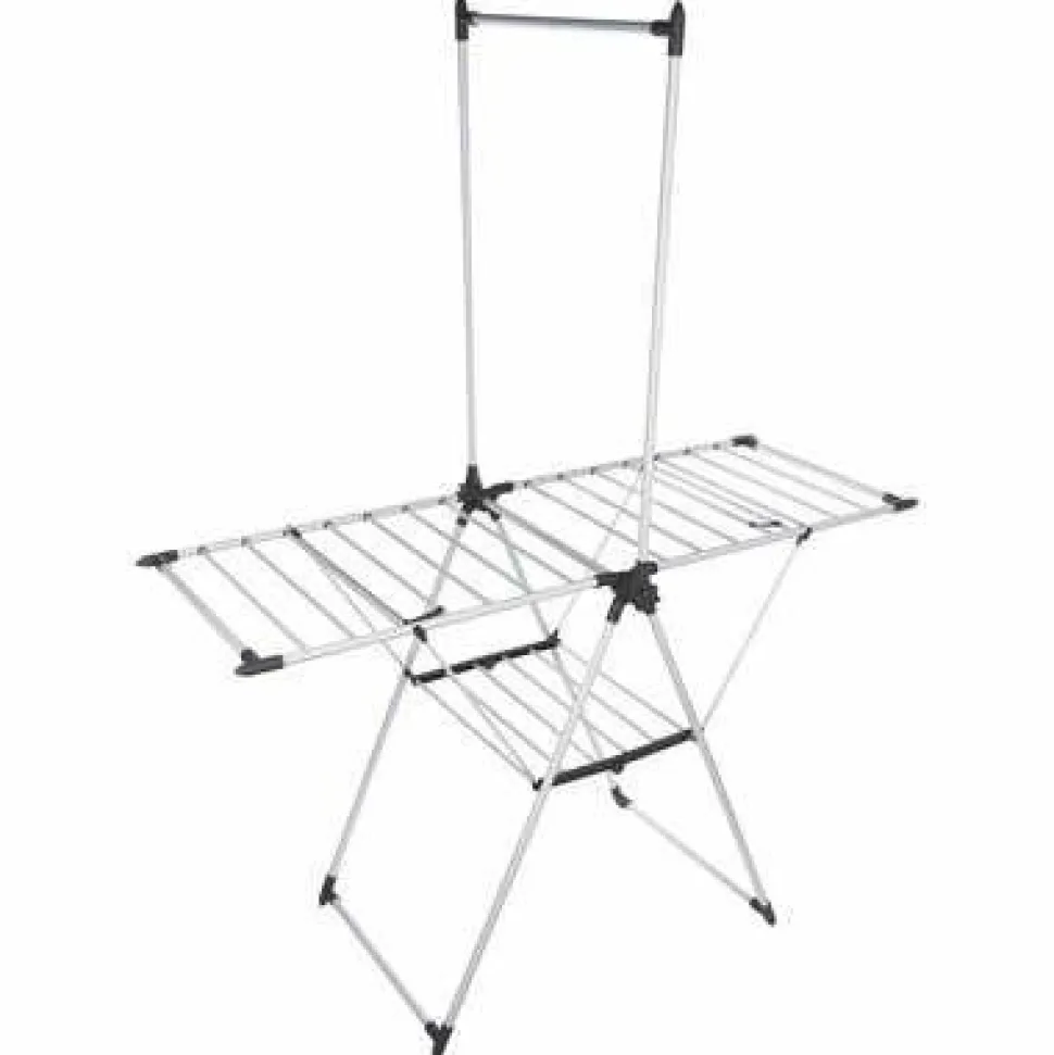 Duży wieszak do suszenia koszul sprawia, że suszarka jest idealna do suszenia nawet największych i najcięższych ubrań. Łatwe składanie i blokowanie dzięki pokrętłu do otwierania i zamykania wieszaka sprawia, że suszarka jest łatwa w obsłudze i przechowywaniu. Dołączone kliny do zabezpieczenia 2 ramion zapewniają dodatkową stabilność i bezpieczeństwo.
