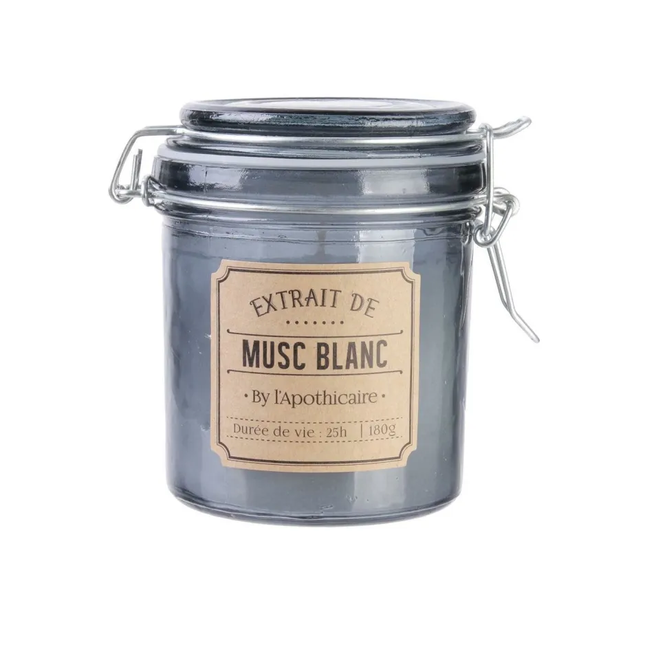 Trend na świece w ciekawych pojemnikach nadal trwa i wyznacza wciąż innowacyjne rozwiązania oraz podpowiada, jak bardzo możemy odmienić charakter naszego wnętrza niepozornie wyglądającymi dodatkami. Świeca zapachowa w aptekarskim słoiku to modna ozdoba, która nie tylko pozwoli zrelaksować się po ciężkim dniu, ale i wprowadzi do przestrzeni nutę niepowtarzalnego klimatu. Słoik zamykany na dawny metalowy uchwyt, dopełni aranżację w stylu vintage. Świeca o zapachu białego piżma pozwoli ukoić nerwy oraz oddać się całkowitemu odprężeniu. Żywotność palenia świecy to aż 25 godzin.