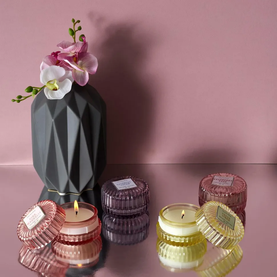 Dodaj nutę uroku swojemu wnętrzu i wprowadź do niego klimatyczny nastrój, dzięki świecy zapachowej Verge w niepowtarzalnym, rzeźbionym, szklanym świeczniku. To dyskretny dodatek, który kryje w sobie świecę o zapachu bawełny. Zapach bawełny ukoi Twoje nerwy i pozwoli Ci się odprężyć w stu procentach. Stwórz kolekcję kolorowych świec o czterech czarujących zapachach.