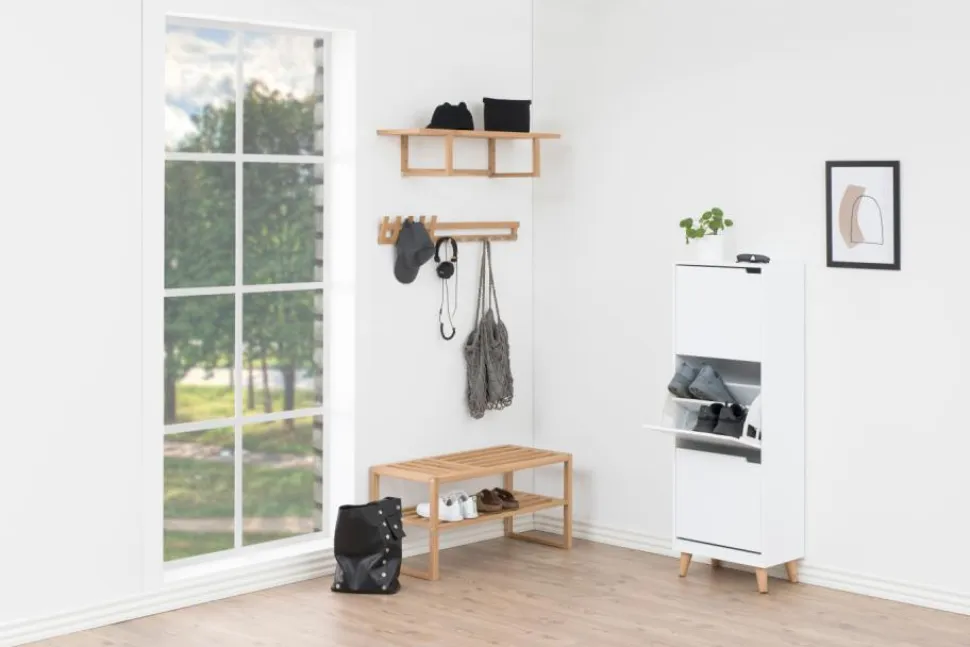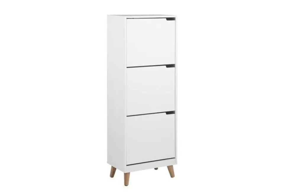Niezwykle praktyczna, prosta i zachwycająca szafka na buty Mitra to doskonały mebel, który ułatwi porządkowanie Twojego obuwia ale nie tylko. Zrobiona z wysokiej jakości płyty MDF z 3 półkami prezentuje się stylowo.Nogi wykonane zostały z drewna dębowego. Doskonale sprawdzi się w każdym pomieszczeniu.