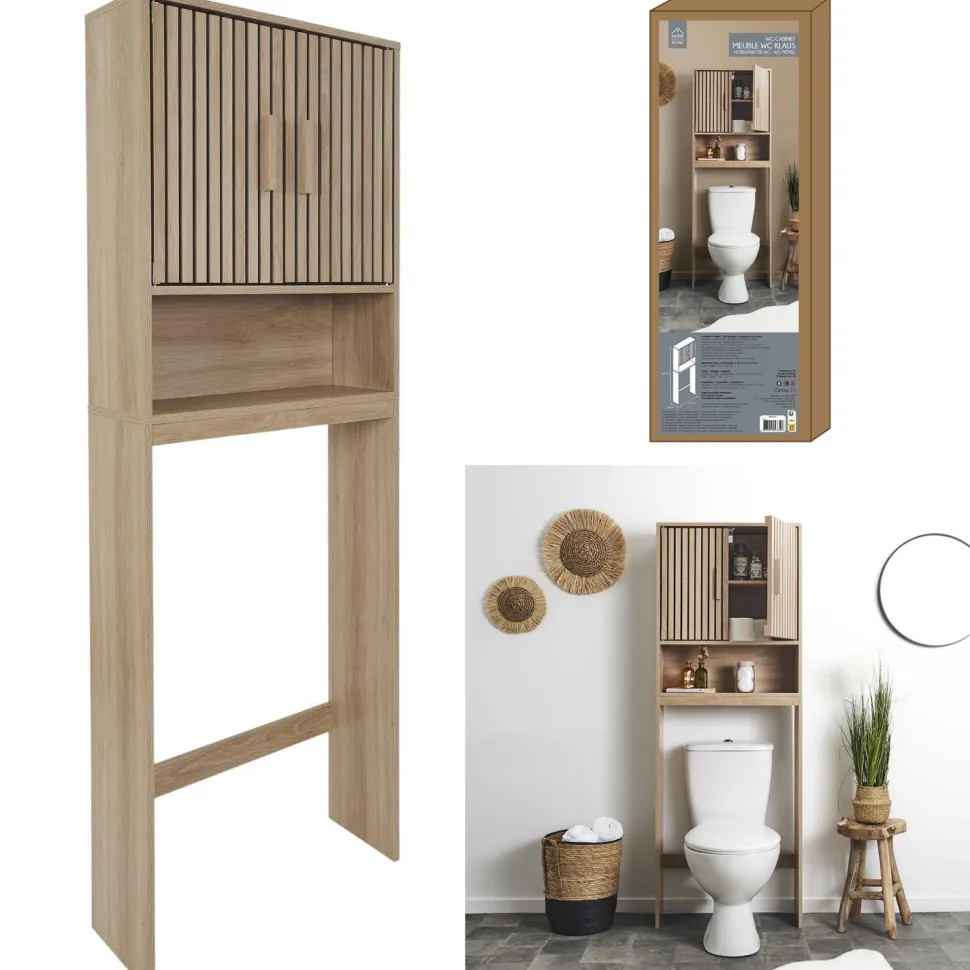 Nie masz miejsca na przechowywanie akcesoriów łazienkowych? Szafka nad sedes Klaus naturalna jest odpowiedzią na Twoje potrzeby. Wykonana z płyty MDF w okleinie imitującej drewno dębu, nie tylko estetycznie wygląda, ale także jest wytrzymała. Dzięki niej, możesz wygodnie uporządkować swoje kosmetyki i chemię gospodarczą, a maksymalne obciążenie szafki wynosi aż 15 kg!