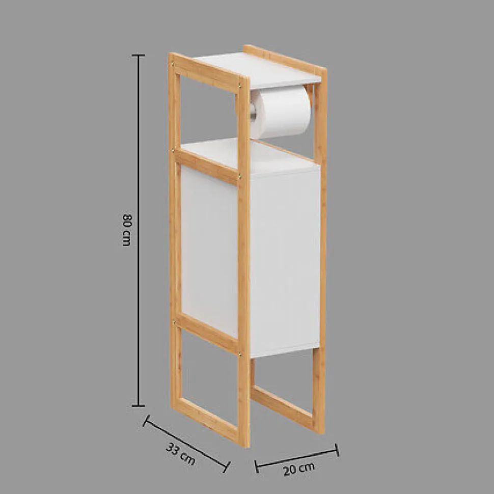 Szafka Natureo na papier toaletowy biała to wyjątkowy mebel, który doskonale sprawdzi się w każdej łazience. Dzięki swoim niewielkim rozmiarom idealnie wpasuje się nawet w najmniejsze pomieszczenia, a jednocześnie zapewni praktyczne miejsce do przechowywania papieru toaletowego. Wykonana z drewna bambusowego i płyty MDF, jest nie tylko estetyczna, ale także trwała i łatwa do czyszczenia. Jej nowoczesny, minimalistyczny i klasyczny styl sprawia, że doskonale komponuje się z różnymi aranżacjami wnętrz.