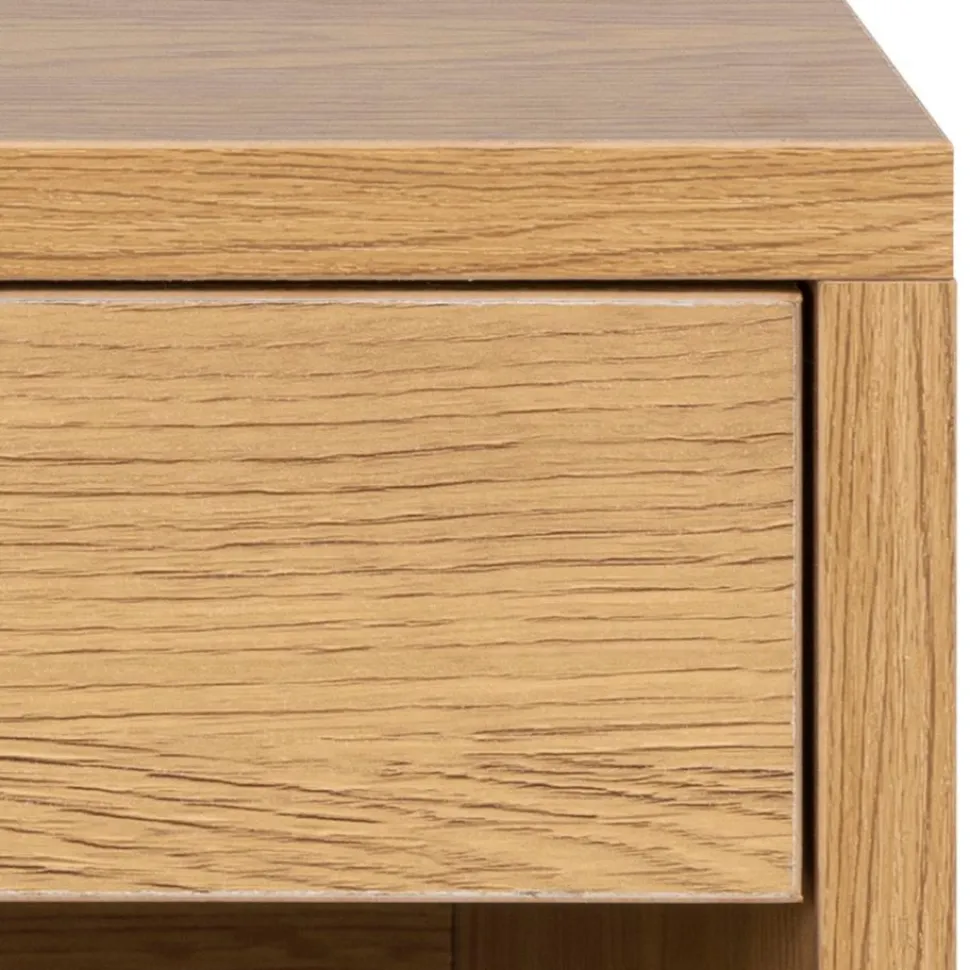 Otwarta komora pod spodem to kolejna praktyczna funkcja tej szafki nocnej. Możesz w niej przechowywać swoje ulubione książki, czasopisma czy inne drobiazgi, które chcesz mieć zawsze pod ręką. Dzięki temu będziesz mógł cieszyć się swoimi ulubionymi lekturami bez konieczności wstawania z łóżka. Materiał, z którego została wykonana szafka nocna Cholet, to MDF pokryte okleiną imitującą dąb. To połączenie trwałości i elegancji, które doda uroku Twojej sypialni. Dodatkowo, szafka wymaga samodzielnego montażu, co pozwoli Ci na dostosowanie jej do Twoich indywidualnych potrzeb.