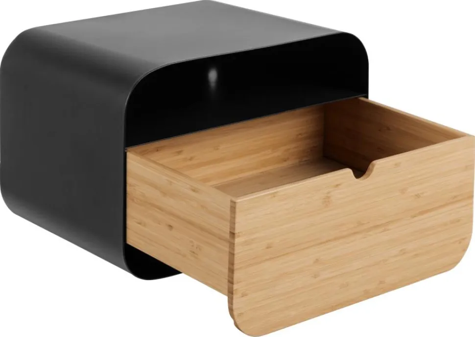 Jedną z największych zalet tej szafki jest jej pojemność. Dzięki bambusowej szufladzie, możesz schować w niej wszystkie swoje drobiazgi, takie jak klucze czy portfel, aby utrzymać porządek w pomieszczeniu. Natomiast na górze szafki znajduje się otwarta przegroda, idealna do eksponowania Twoich ulubionych książek, zdjęć czy dekoracji. Niezwykle ważnym aspektem tej szafki nocnej jest jej inspiracja nowoczesnym stylem życia. Jej efektowne wykończenie oraz czarny kolor sprawiają, że pasuje zarówno do nowoczesnych, jak i klasycznych wnętrz. Dzięki temu, jest to mebel ponadczasowy, który będzie cieszył Twoje oczy przez wiele lat.