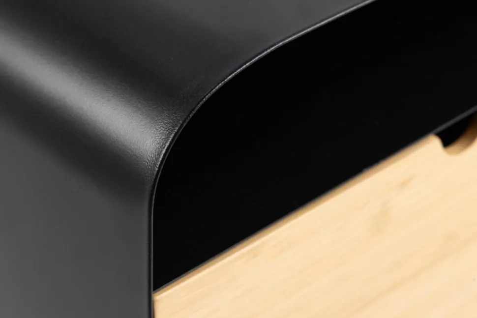 Owalny stolik nocny Joliet został zaprojektowany z myślą o funkcjonalności. Blat i rama wykonane są z czarnej, szorstkiej stali malowanej proszkowo, co nadaje mu industrialny charakter. Szuflada z lakierowanego bambusa NC jest nie tylko estetyczna, ale również wytrzymała i łatwa do utrzymania w czystości. Waga tej szafki nocnej wynosi 7,5 kg, co sprawia, że jest ona niezwykle stabilna i solidna. Możesz być pewien, że posłuży Ci przez wiele lat, niezależnie od tego, gdzie zdecydujesz się ją umieścić.