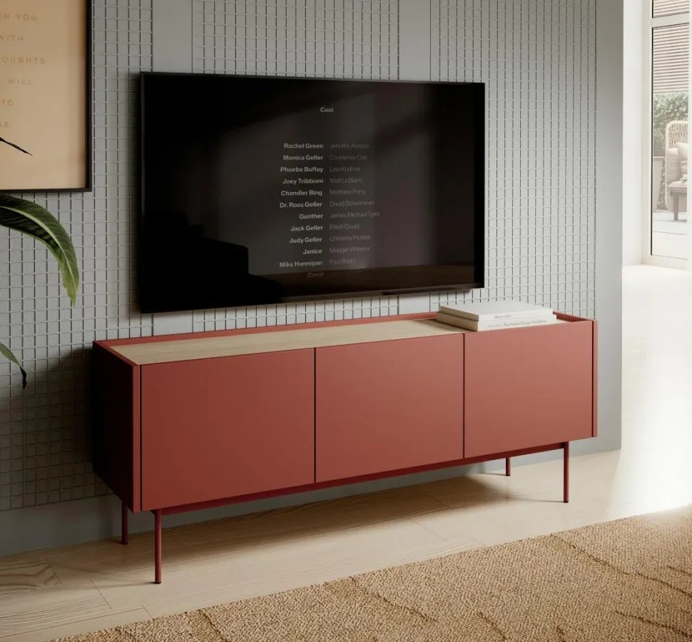 - Minimalistyczna szafka RTV o ciepłym odcieniu