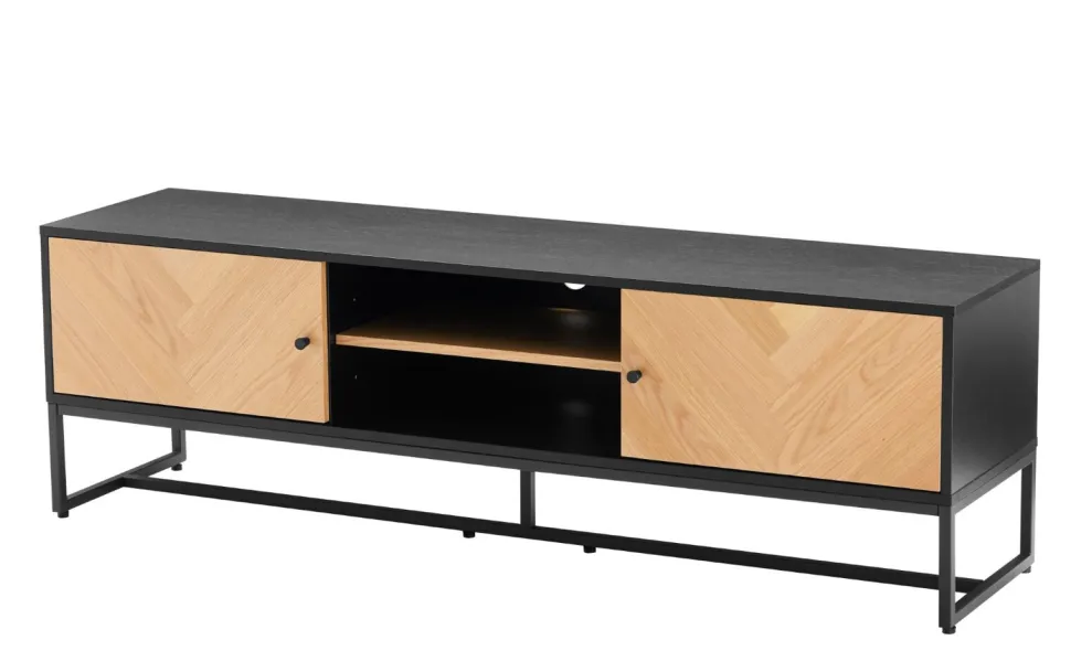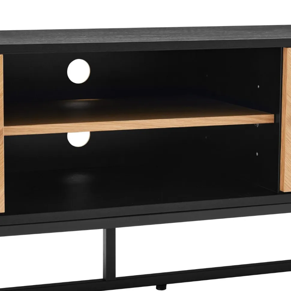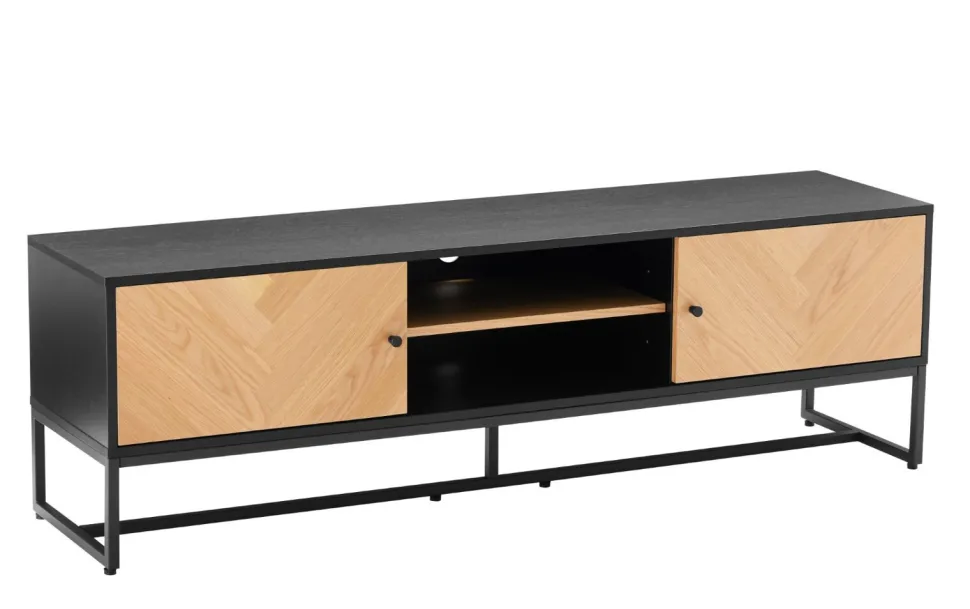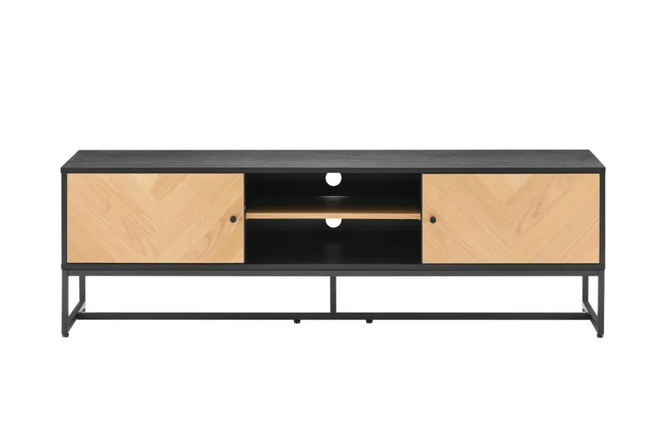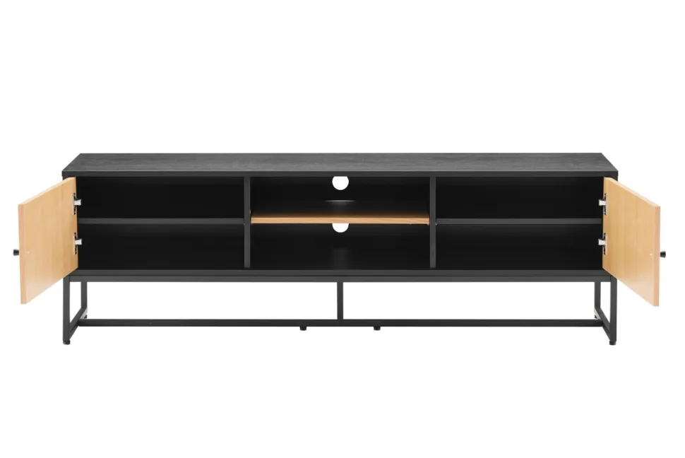 Szafka RTV Clar to eleganckie i funkcjonalne rozwiązanie do przechowywania sprzętu audio-wideo w salonie. Jej metalowa rama malowana proszkowo na czarno nadaje meblowi nowoczesny i stylowy wygląd, który doskonale komponuje się z nowoczesnymi wnętrzami.