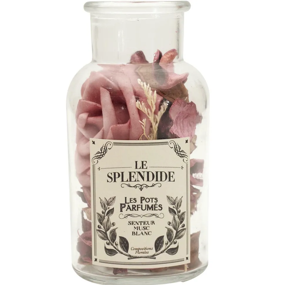 Szklany słoik 16cm z pot pourri różowe od Intesi – elegancka ozdoba i aromatyzator w jednym