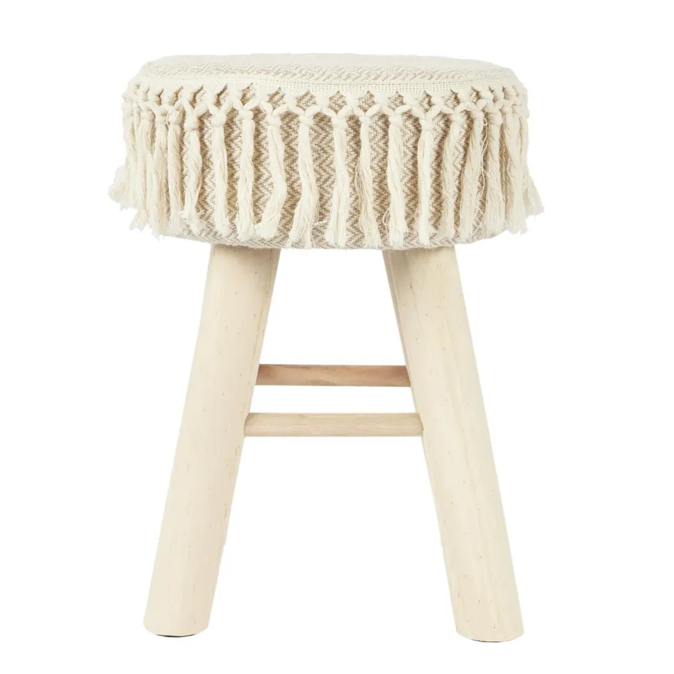 Taboret Pampa beżowy to doskonały dodatek do każdego wnętrza, który nie tylko dodaje elegancji, ale także jest niezwykle praktyczny. Nogi wykonane z solidnej sosny gwarantują stabilność i trwałość, natomiast siedzisko z MDF pokryte poliestrem i bawełnianym sznurkiem zapewniają wygodę podczas użytkowania.
