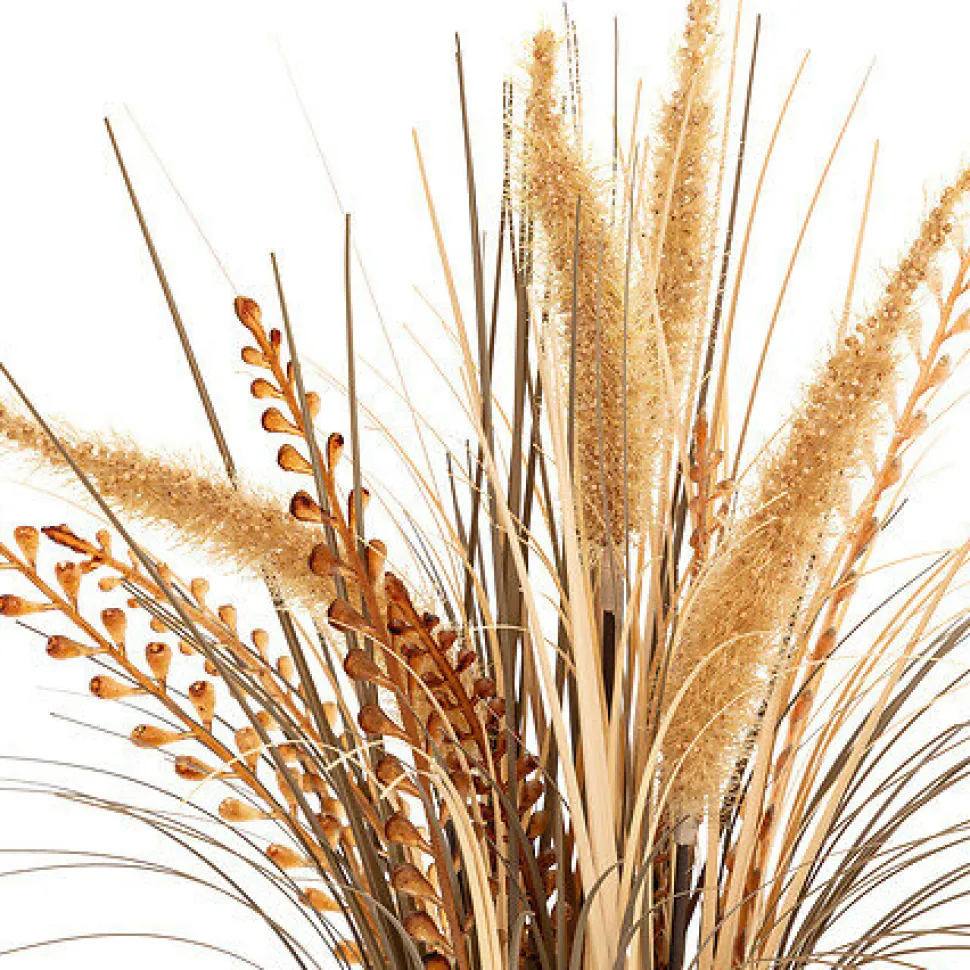 Wiązka zbóż James to estetyczny dodatek, który można ustawić samodzielnie w wazonie lub połączyć z innymi dekoracjami roślinnymi, tworząc spójne kompozycje. Jej żółty odcień idealnie wpisuje się w jasne, stonowane wnętrza, dodając im subtelnej barwy i elegancji. Lekka konstrukcja z tworzywa sztucznego gwarantuje trwałość i łatwość w utrzymaniu, dzięki czemu dekoracja zachowuje swój wygląd przez długi czas.