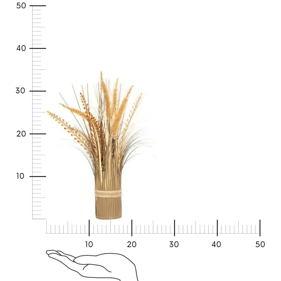 Wiązka zbóż James o wysokości 35 cm w żółtym kolorze to wyjątkowa ozdoba, która doda wnętrzu naturalnego uroku w stylu boho. Wykonana z tworzywa sztucznego, imitująca suszone zboża dekoracja świetnie sprawdzi się w różnych aranżacjach, wprowadzając ciepłą i przytulną atmosferę do domu. Doskonale nadaje się do wystroju salonu, jadalni lub sypialni, podkreślając naturalne akcenty w wystroju.