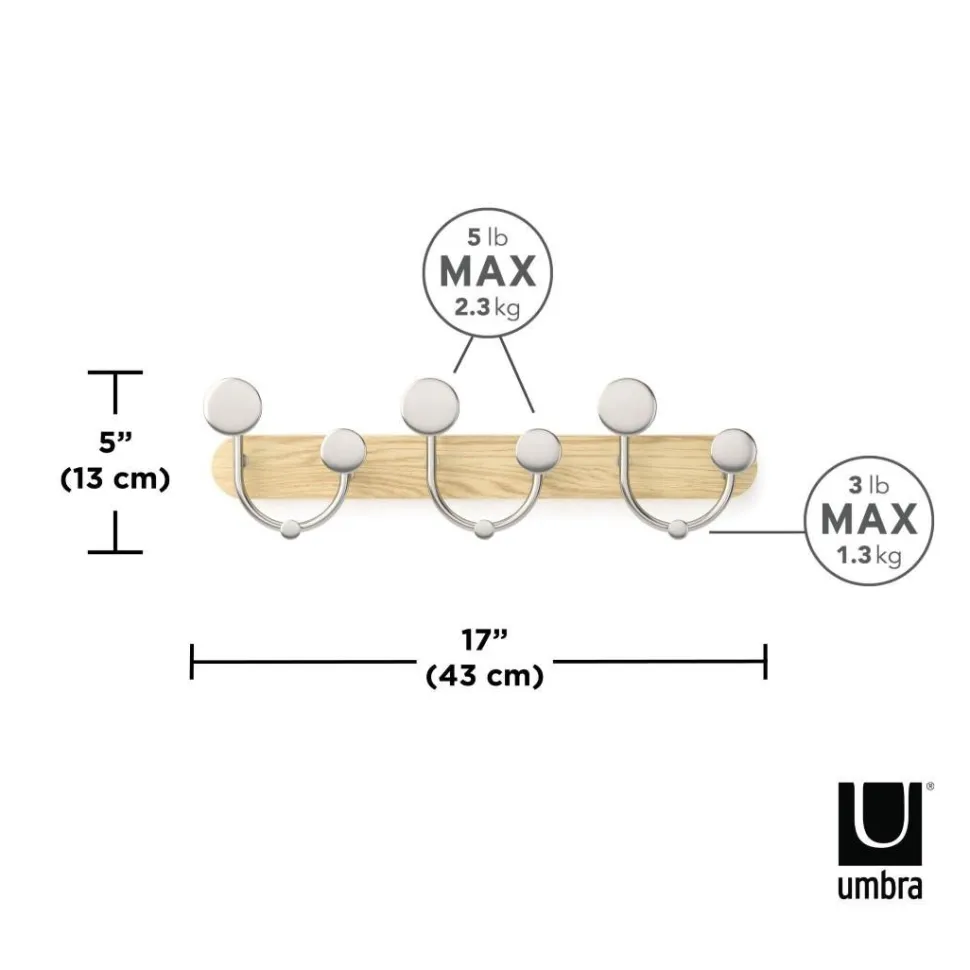- Wykonany z certyfikowanego drewna i niklowanych haczyków o maksymalnym obciążeniu 17kg