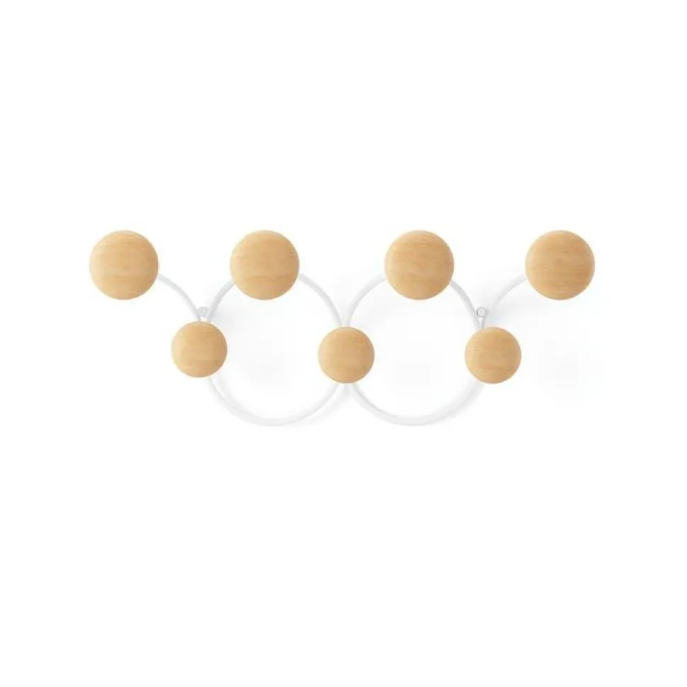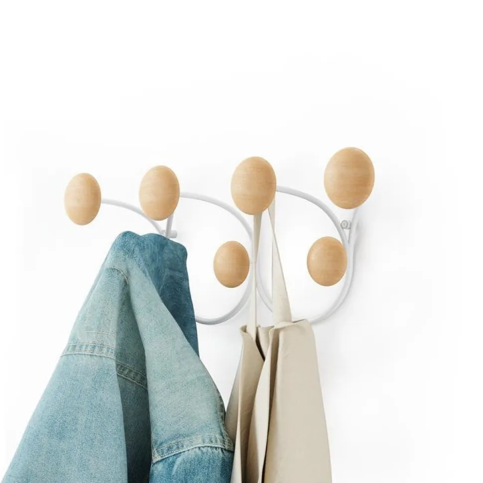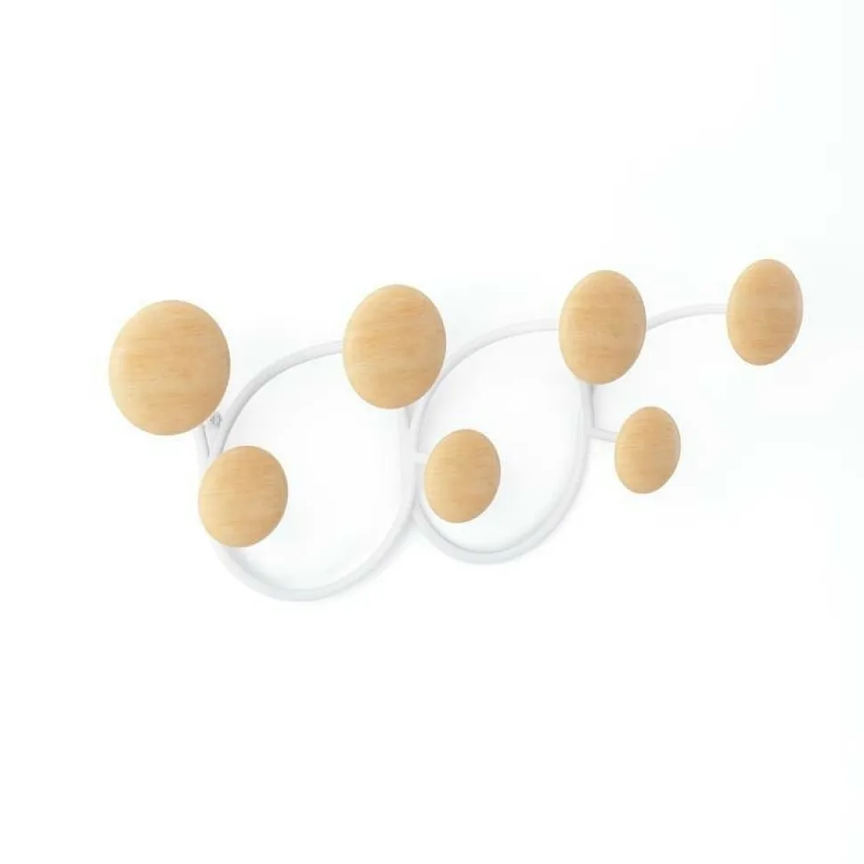 Gdy nie wiesz, jak uporządkować swój przedpokój — idealnym sposobem będzie wieszak Dotsy! Posiada on 7 wygodnych haczyków, na których można zawiesić kurtki, parasole i torebki. Bardzo estetyczna forma, składa się z metalowej konstrukcji do przykręcenia na ścianie i 7 drewnianych okrągłych elementów. To połączenie nigdy nie przestanie być modne, a jednocześnie wykonane jest w niezwykle nowoczesny sposób. Kreatywny wieszak będzie nie tylko funkcjonalnym wyposażeniem, ale i piękną osobą. Urozmaici ściany w przedpokoju, kuchni czy pokoju dziecięcym. Będzie też świetnym rozwiązaniem do gabinetu i poczekalni. Solidne wykonanie i dizajnerska forma sprawią, że każdy użytkownik pokocha wieszak ścienny Dotsy! Dostępny także w innej kolorystyce.