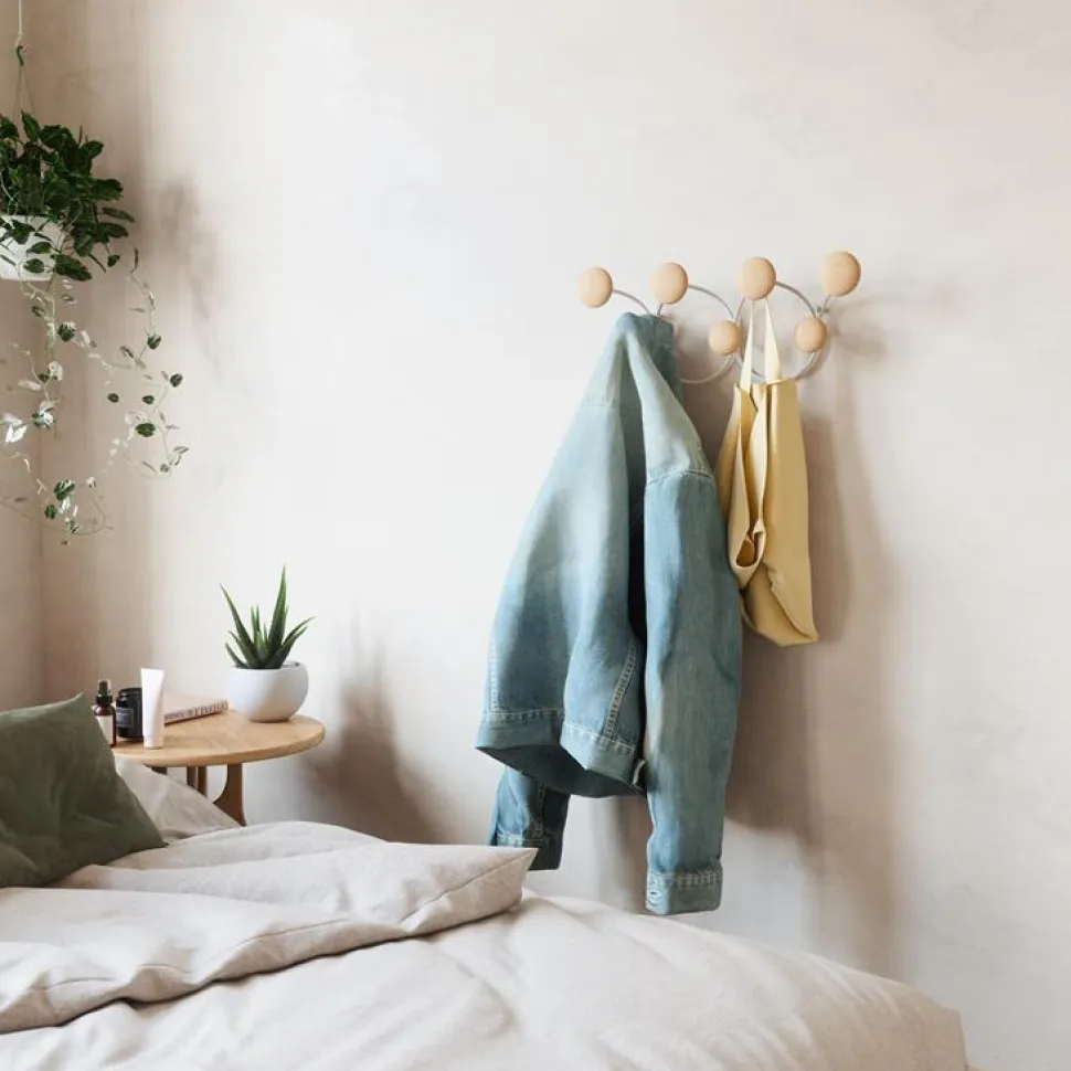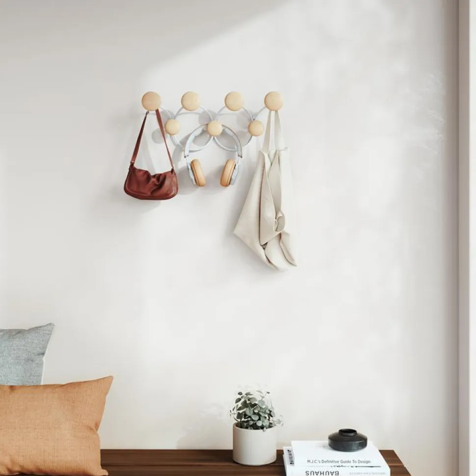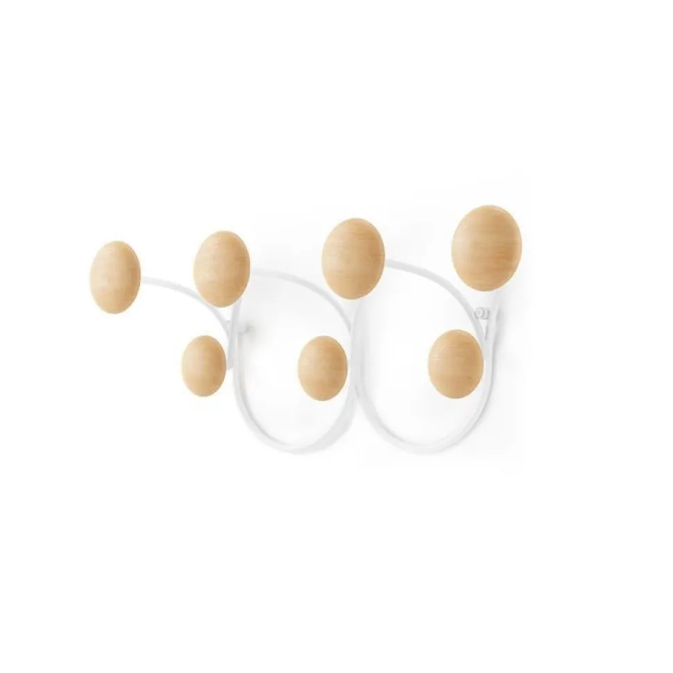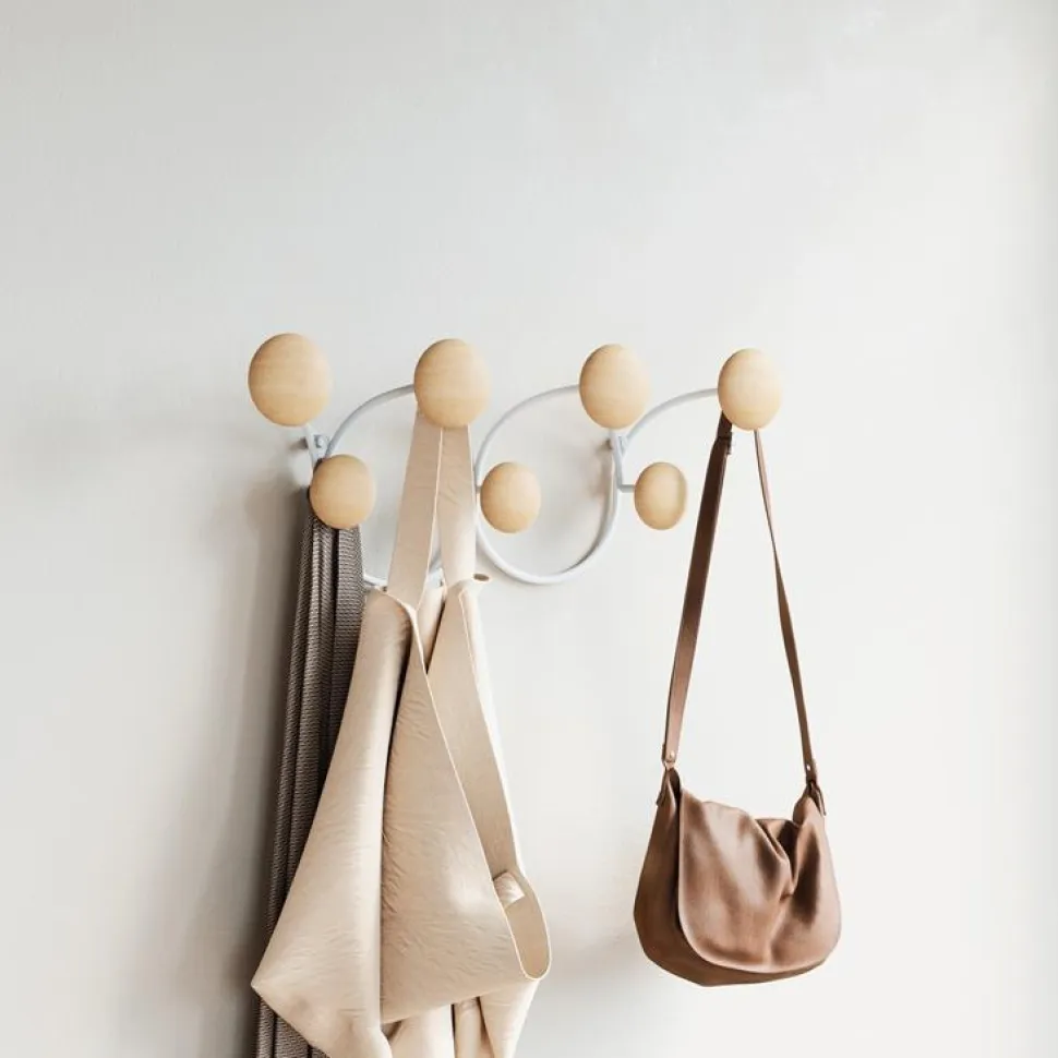 Gdy nie wiesz, jak uporządkować swój przedpokój — idealnym sposobem będzie wieszak Dotsy! Posiada on 7 wygodnych haczyków, na których można zawiesić kurtki, parasole i torebki. Bardzo estetyczna forma, składa się z metalowej konstrukcji do przykręcenia na ścianie i 7 drewnianych okrągłych elementów. To połączenie nigdy nie przestanie być modne, a jednocześnie wykonane jest w niezwykle nowoczesny sposób. Kreatywny wieszak będzie nie tylko funkcjonalnym wyposażeniem, ale i piękną osobą. Urozmaici ściany w przedpokoju, kuchni czy pokoju dziecięcym. Będzie też świetnym rozwiązaniem do gabinetu i poczekalni. Solidne wykonanie i dizajnerska forma sprawią, że każdy użytkownik pokocha wieszak ścienny Dotsy! Dostępny także w innej kolorystyce.
